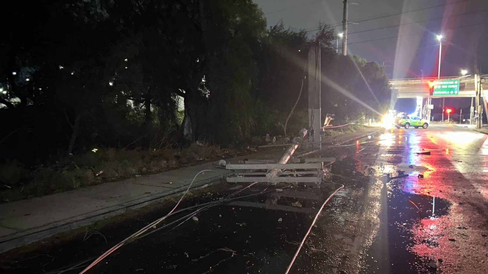 El Sistema Municipal de Protección Civil atendió la caída de un árbol, un poste y cables en Circuito Potosí y la entrada a la colonia La Virgen, lo que provocó el cierre de un carril. También se reportó la caída de señalética vial en el descenso hacia Bulevar Río Santiago, donde se realizaron maniobras para su retiro.
