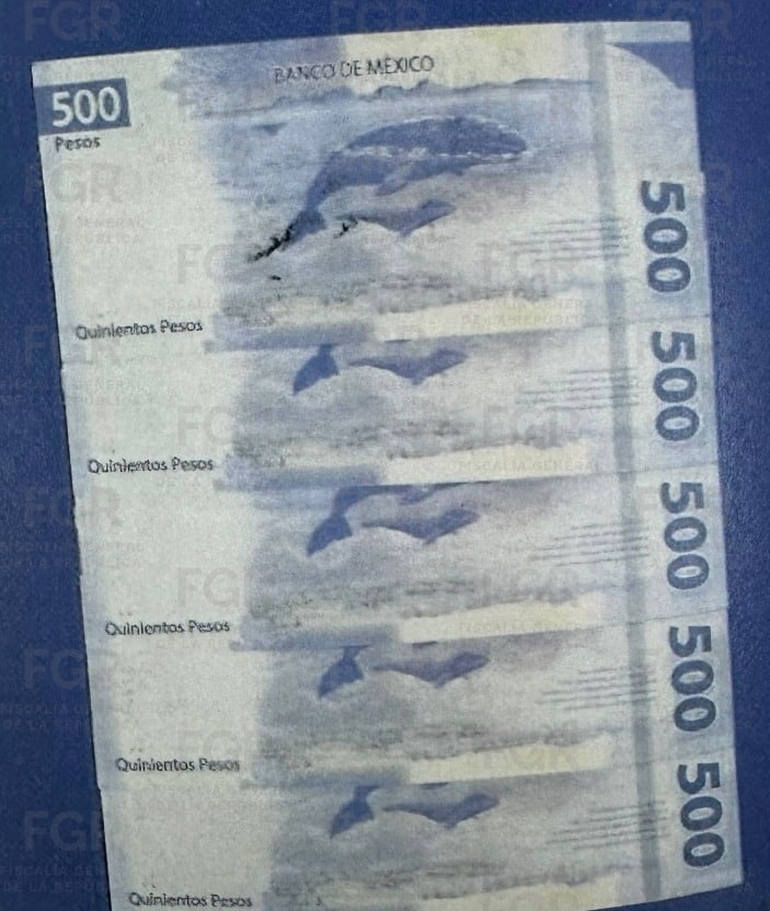 Durante la revisión, las autoridades aseguraron al detenido un total de 108 billetes falsos de 500 pesos, lo que representa un monto de 54 mil pesos en moneda apócrifa. Tanto el hombre como el dinero asegurado fueron puestos a disposición de la Fiscalía Federal en San Luis Potosí.