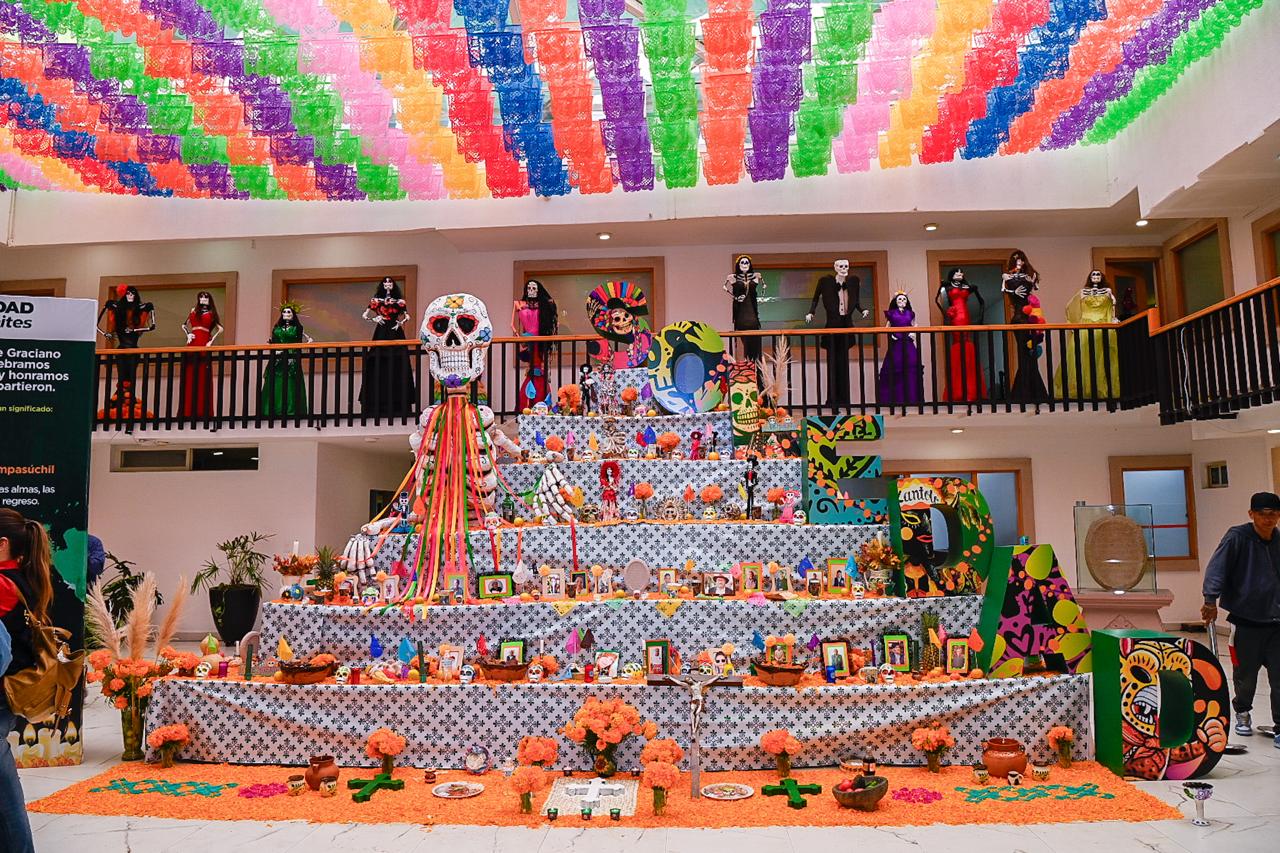 Durante el evento, el Alcalde destacó la importancia de mantener vivas las costumbres que nos unen como comunidad y fortalecen nuestra identidad nacional y local. “Estas tradiciones son parte de nuestras raíces, de nuestro amor por la familia y por quienes ya no están físicamente, pero siguen presentes en nuestra memoria y corazón”, expresó Navarro Muñiz, quien además invitó a las familias a visitar este Altar Monumental que estará disponible a lo largo de toda la semana en la Presidencia Municipal, de las 8 de la mañana a las 8 de la noche.