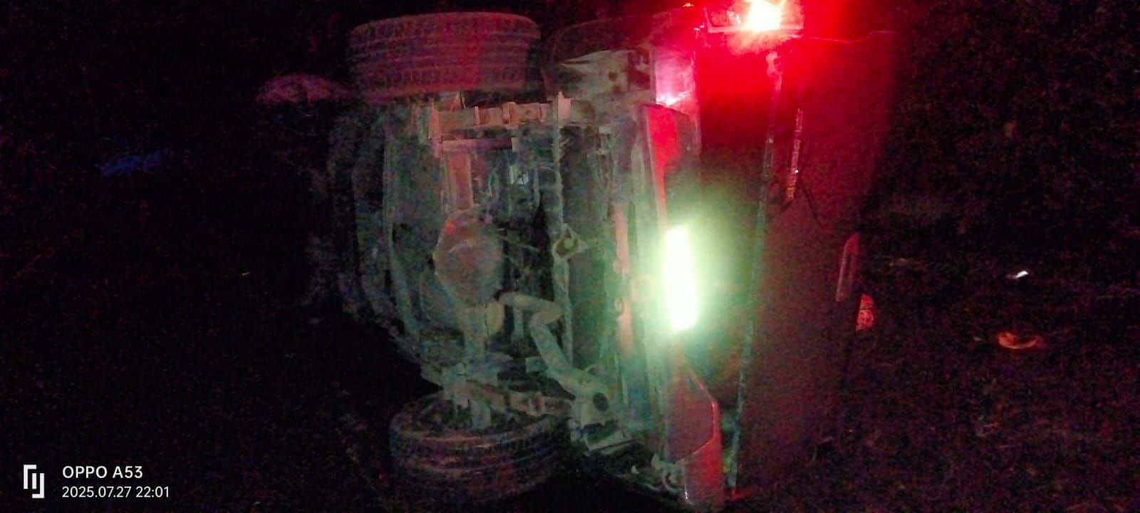 La noche del domingo se registró un accidente vehicular sobre la carretera libre Valles–Rioverde, en el tramo conocido como “El Serranito”, a la altura del kilómetro 55, en el municipio de Tamasopo. Una camioneta donde viajaba una familia originaria de Soledad de Graciano Sánchez se volcó, dejando como saldo cuatro personas lesionadas, entre ellas dos menores de edad.