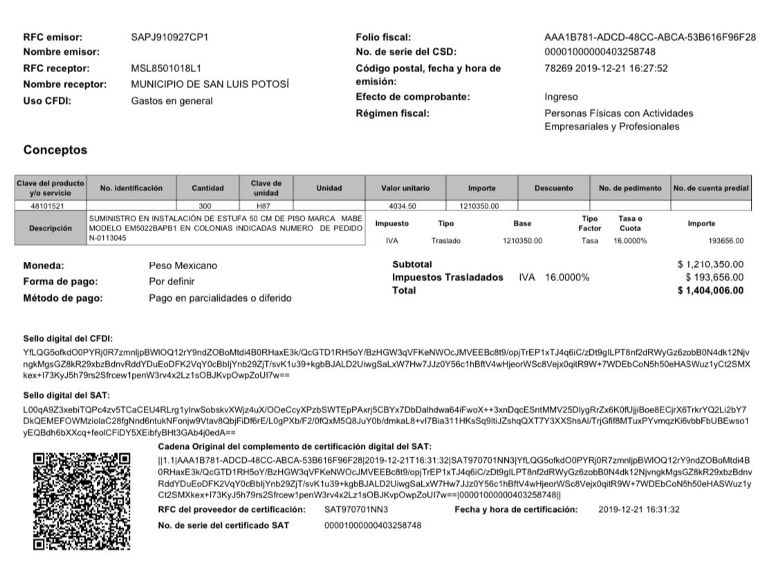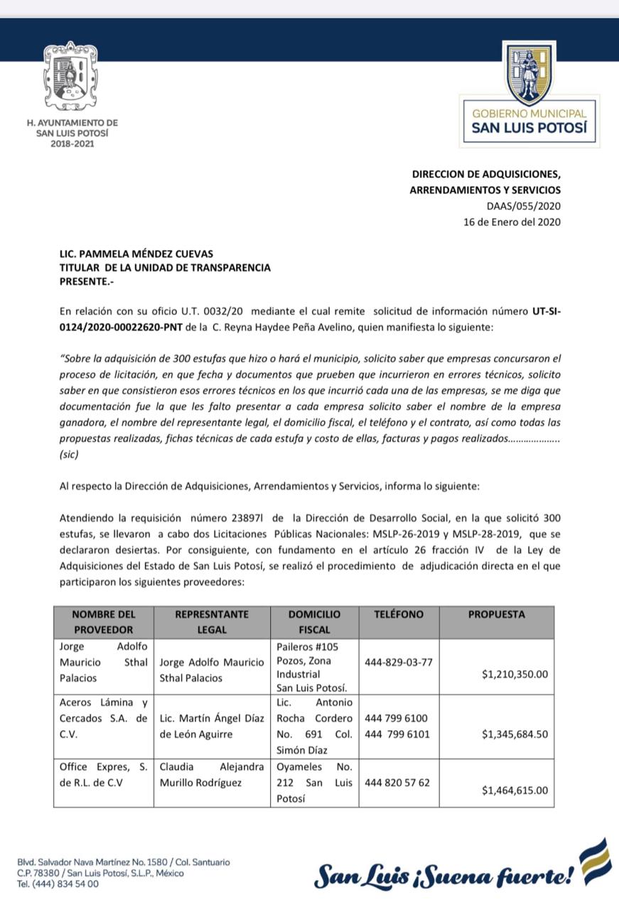 De acuerdo con información del Gobierno Municipal, fueron adquiridas 300 estufas de la marca Mabe, modelo EM5022BAPB1, a un precio unitario de $4,680.02 pesos, por lo que la factura fue de $1,404,006.00 (un millón cuatrocientos cuatro mil seis pesos). Sin embargo, en el sitio web del fabricante, el mismo producto lo puedes conseguir al flamante precio, ya rebajado, de $2,699.00 pesos; de haberlas comprado a este precio, solo hubieran gastado $809,700 (ochocientos nueve mil setecientos pesos) de los impuestos de los potosinos.