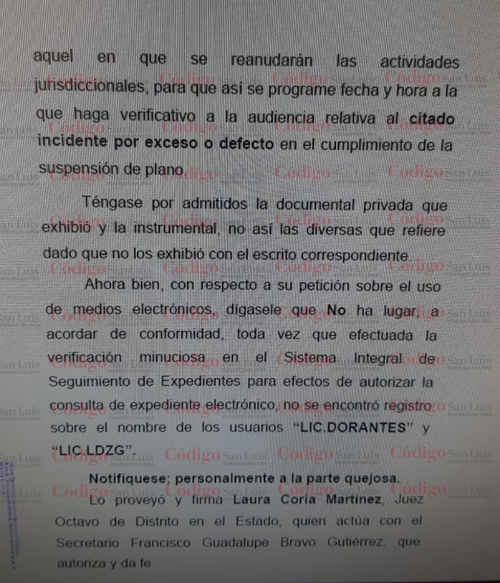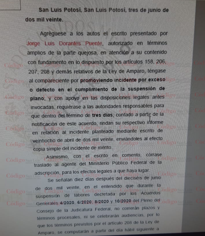 A pesar de que el edil y su síndico, Alicia Nayeli Vázquez Martínez, negaron tajantemente que se estuvieran violentando las garantías de los ejidatarios, y apelaron al derecho de vía para realizar la construcción; la juez Laura Coria Martínez, admitió un incidente por exceso o defecto en el cumplimiento de la suspensión de plano, por parte de los quejosos que están viendo afectada su propiedad, ante las omisiones en que incurrió el gobierno capitalino.