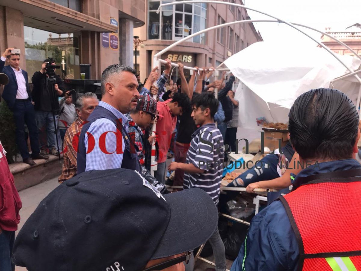 Gritando de impotencia y desesperación, los comerciantes enfrentaron a medio centenar de inspectores y otro grupo de policías municipales.