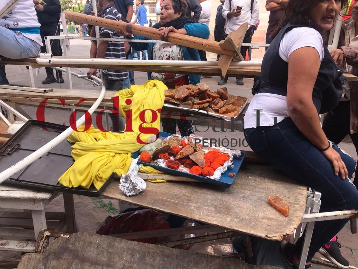 Enfundados en chalecos azules y naranjas, los sicarios de Nava intentaron desmantelar unos puestos, pero con valor y dignidad, las mujeres, hombres y niños defendieron su patrimonio aunque, en el forcejeo, perdieron algunos de sus productos como dulces y chocolates.