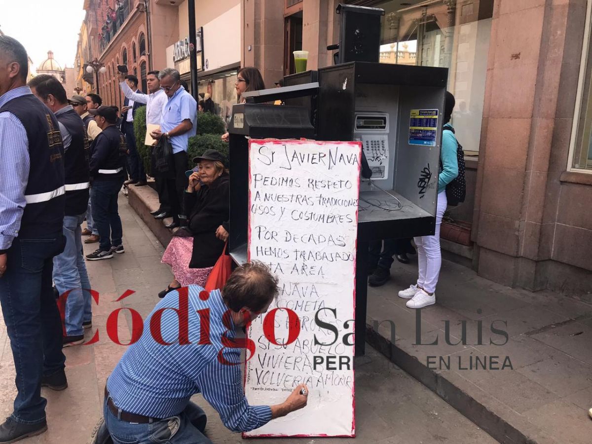 Isabel López Navarro, una de las víctimas recurrentes del Ayuntamiento capitalino, dijo que Xavier Nava discrimina a la gente pobre, a los que trabajan, pero protege a los delincuentes. Añadió que los comerciantes pagan su derecho de piso y amenazó con irrumpir en la inauguración en la feria del chocolate si inspectores y policías continúan agrediéndolos.