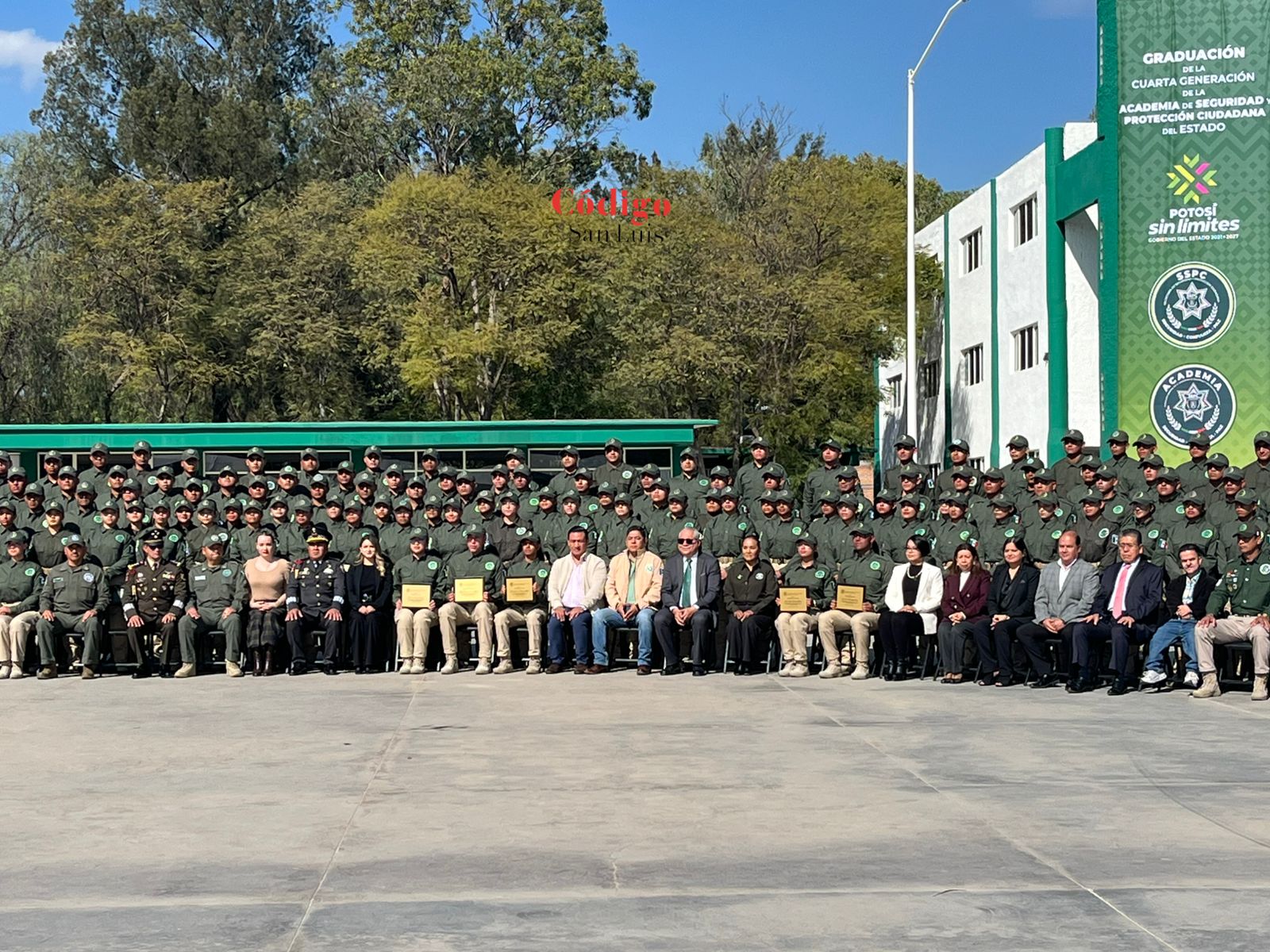 La ceremonia fue encabezada por el gobernador Ricardo Gallardo Cardona, quien destacó que los nuevos agentes se integran a una corporación que ha sido fortalecida con mejor equipamiento, infraestructura moderna y salarios competitivos, convirtiéndola en una de las mejor remuneradas del país. Además, subrayó que esta generación forma parte de un proceso de transformación que busca mantener a San Luis Potosí entre las entidades más seguras del territorio nacional.