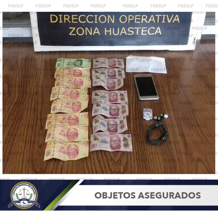 Con esa información se realizó un operativo en el interior del comercio, al cual arribó una persona del sexo masculino, quien de inmediato le exigió el dinero a la víctima y la despojó de su teléfono celular, además de maltratarla, por lo que al estar ante hechos probablemente constitutivos de delito, los integrantes de la PDI procedieron a identificarse como personal activo de la FGESLP y realizaron el aseguramiento formal de quien se identificó como Jesús “N”, a quien le fueron leído sus derechos como detenido.