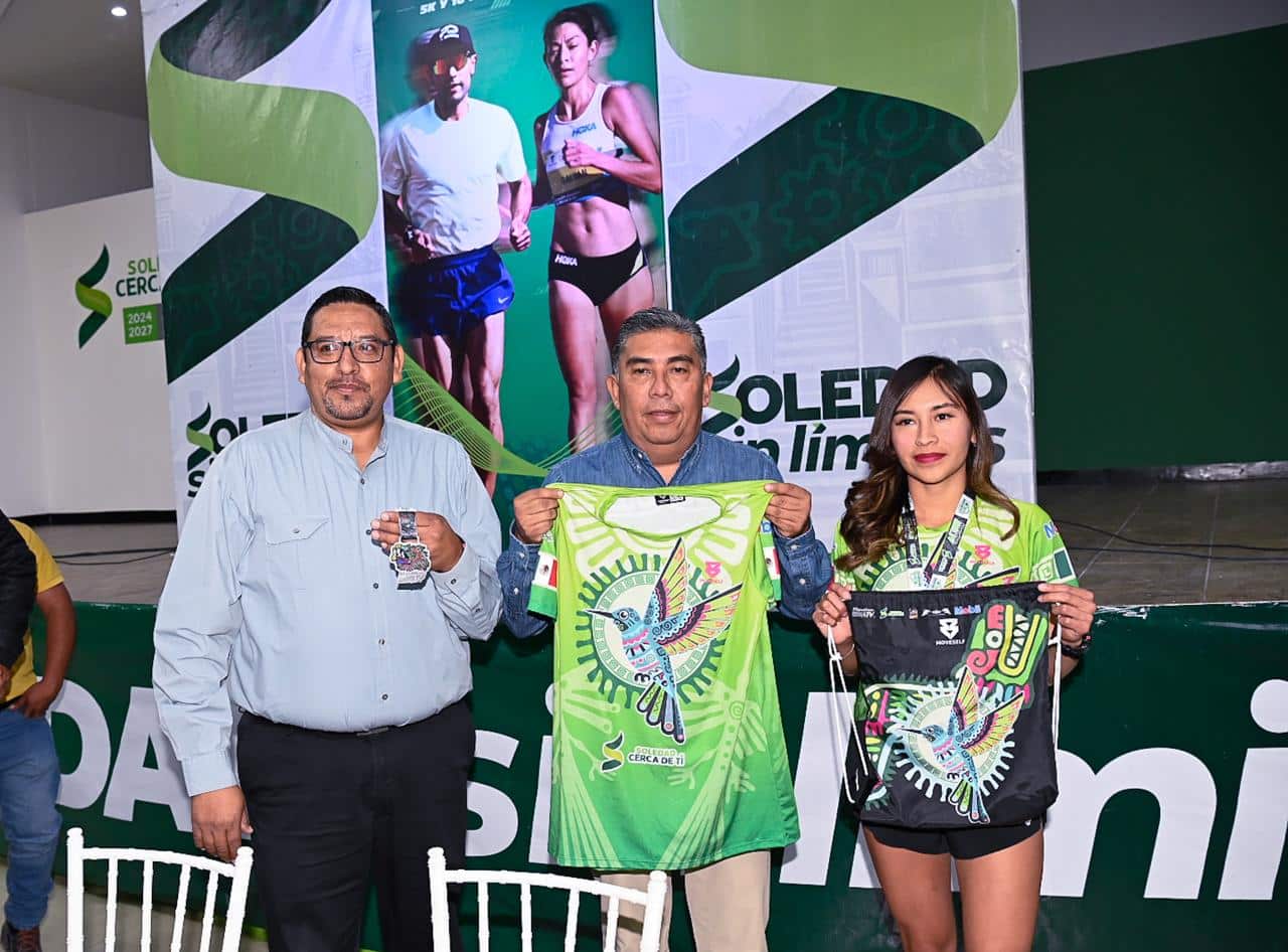 La carrera atlética Marathón TV 2025 se realizará este sábado 15 y domingo 16 de noviembre, contará con carreras de 5 y 10 kilómetros, categorías infantiles y juveniles, así como la participación de atletas élite provenientes de diversos países; la playera oficial, de color verde y con motivos prehispánicos y nacionales, luce un colibrí al centro y el logotipo de la administración municipal de Soledad de Graciano Sánchez, símbolo del compromiso constante de este gobierno con el deporte y la promoción de la identidad cultural.