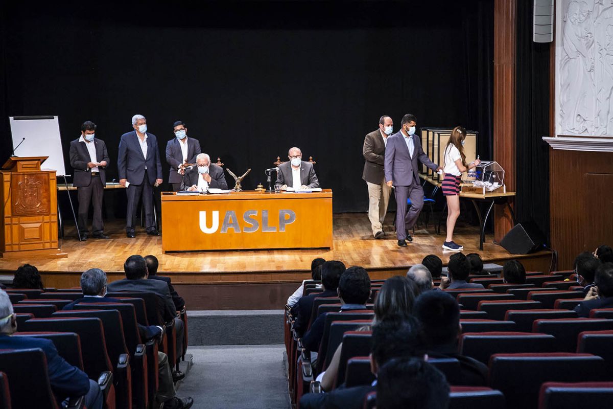 En una sesión extraordinaria realizada con todas las medidas preventivas en materia sanitaria en el auditorio Rafael Nieto Compeán, los 55 integrantes del consejo entre directores de entidades académicas, consejeros maestros y alumnos, así como el presidente de la Federación Universitaria (FUP) decidieron entre los cuatro candidatos: maestra Dolores Lastras Martínez, doctor Anuar Abraham Kasis, doctor Miguel Aguilar Robledo y doctor Alejandro Zermeño Guerra, la votación alcanzó una segunda ronda.