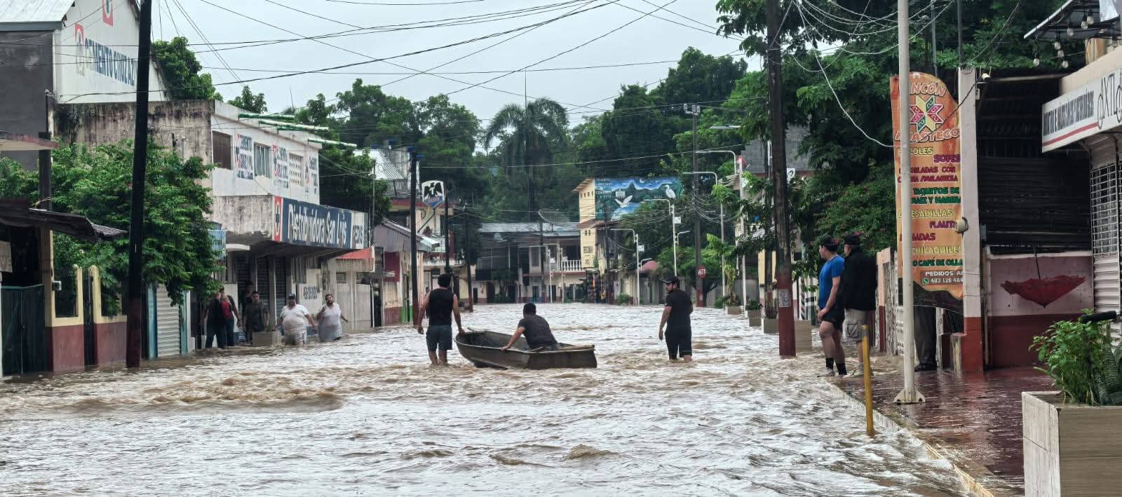 En Tamazunchale, se registran encharcamientos en el Barrio San Rafael, calle 16 de Septiembre y el Callejón Tatiano, donde se efectuaron evacuaciones preventivas por el aumento del nivel del río.