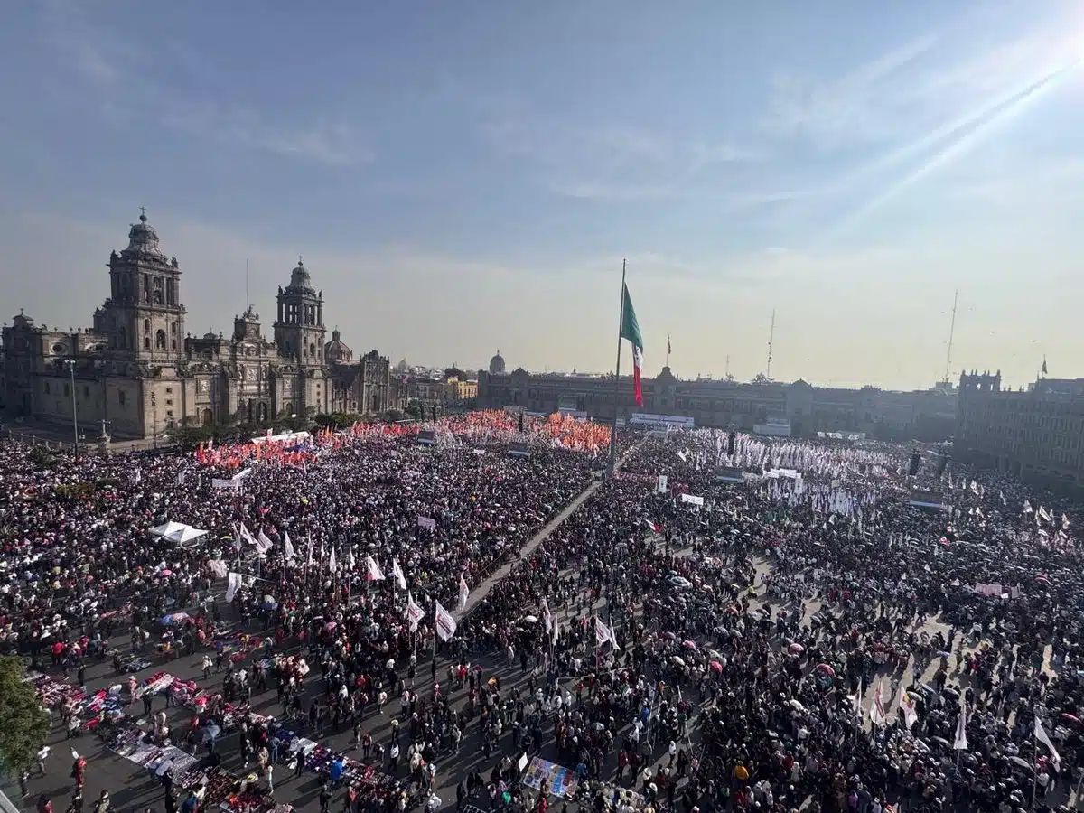 Horas antes del mitin de la presidenta Claudia Sheinbaum en el Zócalo, miles de personas provenientes de diversos estados saturaron las calles del Centro Histórico para manifestar su respaldo. Las avenidas 20 de Noviembre, 5 de Mayo y la calle Madero lucieron repletas de contingentes con banderas de México y símbolos de Morena.