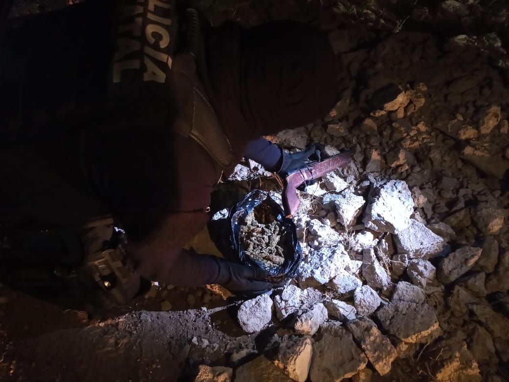En otro evento cuando las tropas realizaban recorridos de vigilancia en coordinación con la Policía Fuerza Metropolitana Estatal, quienes se percataron a gran distancia que dos personas del sexo masculino a bordo de una motocicleta, mismos que al percatarse de la presencia de las autoridades huyeron por una brecha, al mismo tiempo mencionados individuos arrojaron una bolsa misma que contenía en su interior lo siguiente: