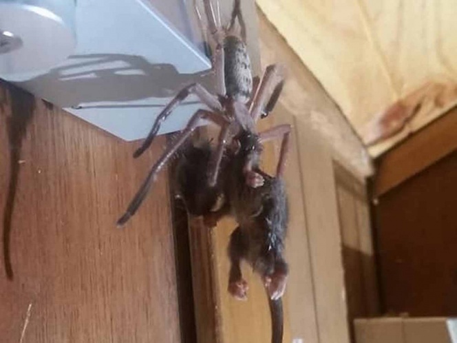 Una pareja de turistas vivió momentos de terror al encontrar a una enorme araña devorando una zarigüeya en Australia.