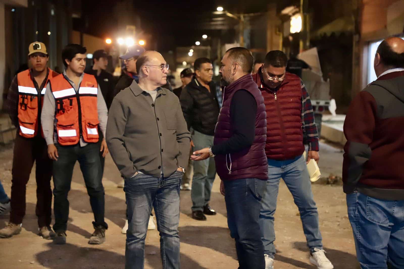 San Luis Potosí, S.L.P. – El alcalde Enrique Galindo Ceballos realizó este jueves una supervisión nocturna de la obra de regeneración integral en la calle Julián de los Reyes, en el corazón del Centro Histórico, que avanza conforme al calendario previsto y estará lista para la temporada decembrina.