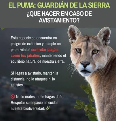 Ante la situación, se emitió un llamado a la población para mantener la calma y evitar cualquier intento de acercamiento o ataque. Se recordó que el puma es una especie protegida y juega un papel importante en el equilibrio ecológico de la región. Las autoridades ambientales y de seguridad implementarán recorridos de vigilancia para confirmar el avistamiento y garantizar la protección tanto de los habitantes como del ejemplar silvestre.
