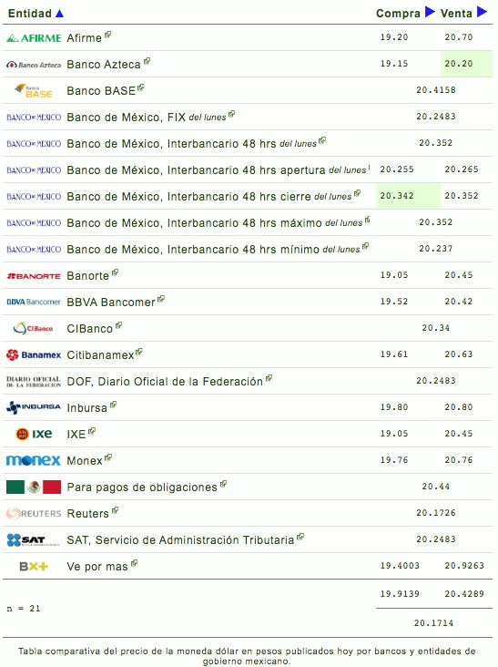 El dólar se cotiza en $20.17 pesos mexicano, esto representa una disminución del 0.0286% con respecto al día de ayer, el cual cerró en 20.33 pesos.
