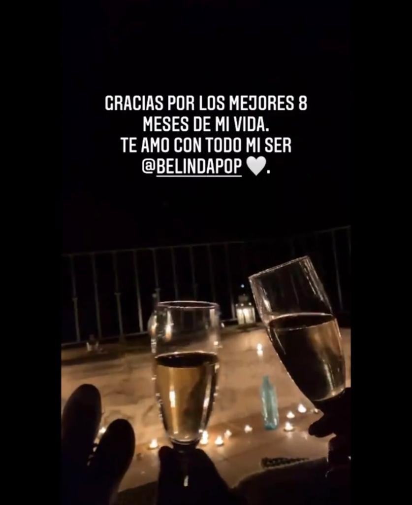 Con gran amor Belinda y Nodal festejaron su octavo mes como novios, para consentir a sus fans decidieron hacer un en vivo en su cuenta de Instagram y compartir su felicidad con aquellos que siempre los han apoyado, entre su trasmisión algunos de ellos les hicieron preguntas que iban desde «cuando se van a casar» «y el anillo para cuando» comentarios como «hacen una hermosa pareja» «no terminen nunca» entre muchas felicitaciones.