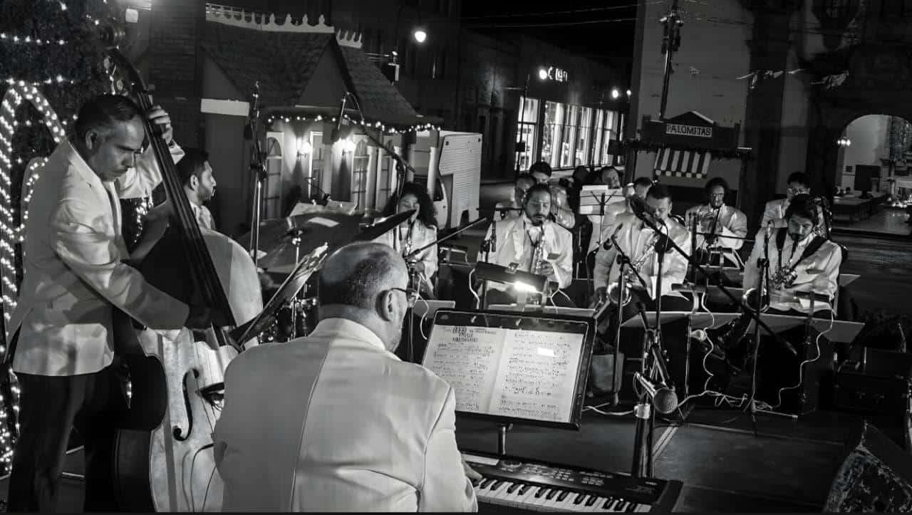 La Plaza de los Fundadores fue el escenario de una velada especial en la que el público disfrutó de un repertorio de clásicos navideños interpretados al ritmo del jazz por la Big Band, bajo la dirección del maestro Carlos Tercero, creando un ambiente festivo que reunió a familias, visitantes y público local.