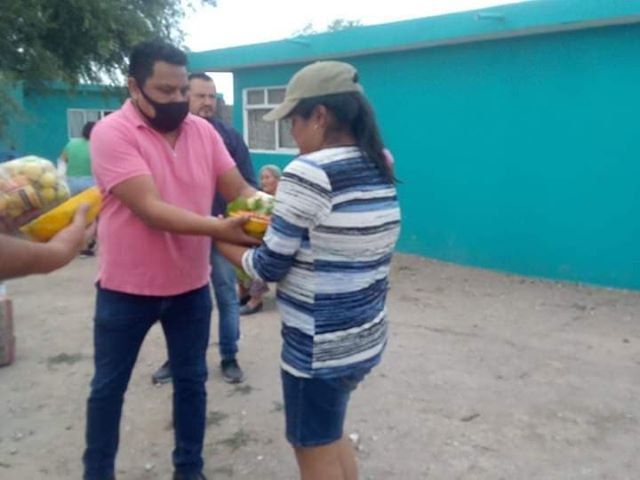 En varias camionetas cargadas con lechugas, jitomates, cebollas, papayas, melones y demás productos, llegaron trabajadores en abastos a las colonias Jaralito, Los Vergueles y Huasteca Zona Baja y a la Delegación de la Pila, para entregar a quienes más lo necesitaban.