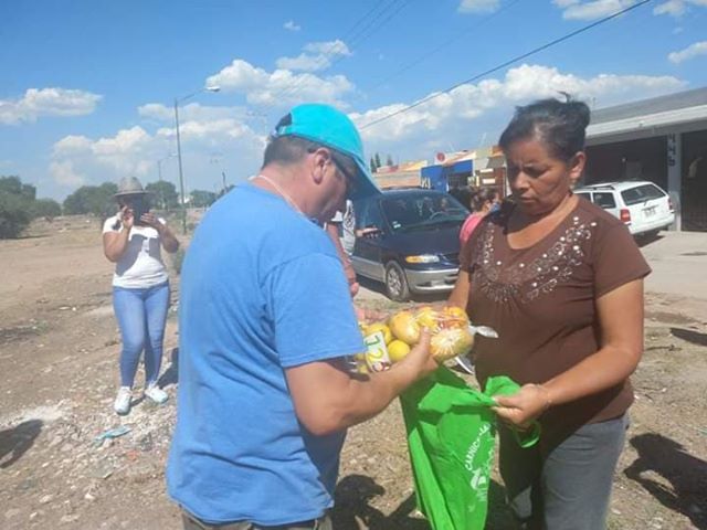 Varios bodegueros de la Central de Abastos se juntaron para llevar un poco de ayuda a las familias más necesitadas de la capital potosina. Entre todos, donaron frutas y verduras a 500 familias de tres colonias y de la delegación de La Pila.