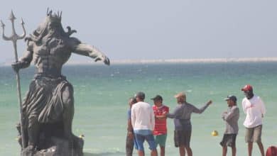 Yucatecos amenazan con derribar estatua de Poseidón del Puerto Progreso