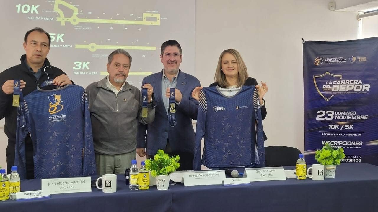 El anuncio se realizó en rueda de prensa encabezada por el Mtro. Rodrigo Sánchez Espinosa, presidente de Industriales Potosinos A.C.; el Dr. Juan Alberto Martínez Andrade, presidente del Club Deportivo Potosino; Armando Quintanilla, coordinador del área técnica de la carrera; y Georgina Ortiz Zamudio, presidenta del comité organizador.