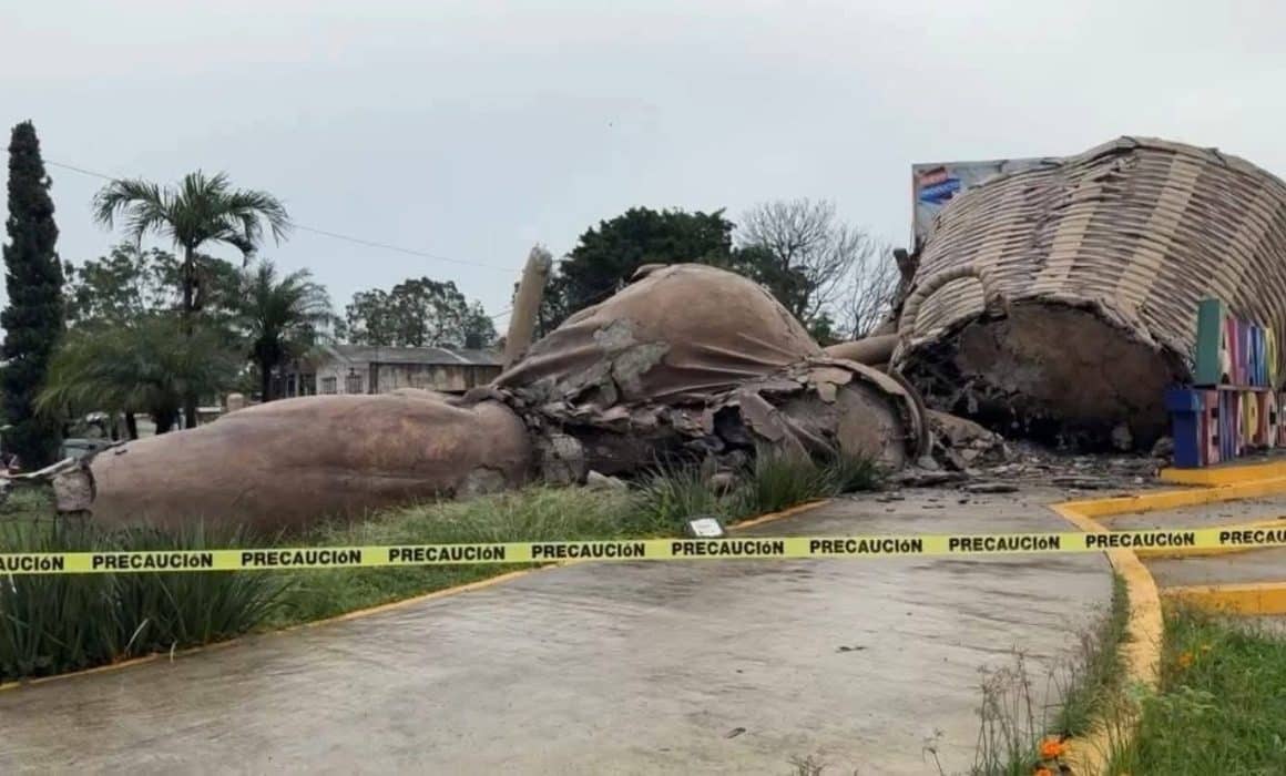 La estatua monumental conocida como «El Colotero», ubicada en la entrada del municipio de Álamo de Temapache, al norte de Veracruz, se derrumbó la mañana de este martes 16 de diciembre, presuntamente a causa de los daños estructurales provocados por las lluvias e inundaciones registradas en octubre pasado.