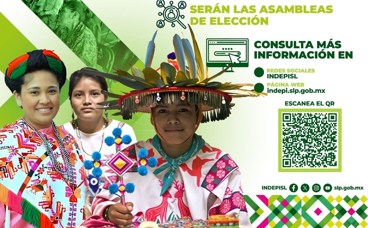 Dentro de las Asambleas municipales de elección serán electas, bajo sus propios sistemas normativos y teniendo en consideración las bases de la convocatoria publicada, las 54 personas que ocuparán este cargo de representación en los 24 municipios que cuentan con población indígena según los registros estatales, la convocatoria se puede consultar en la página: https://periodicooficial.slp.gob.mx/menu/consulta/periodico y redes oficiales de Indepi.