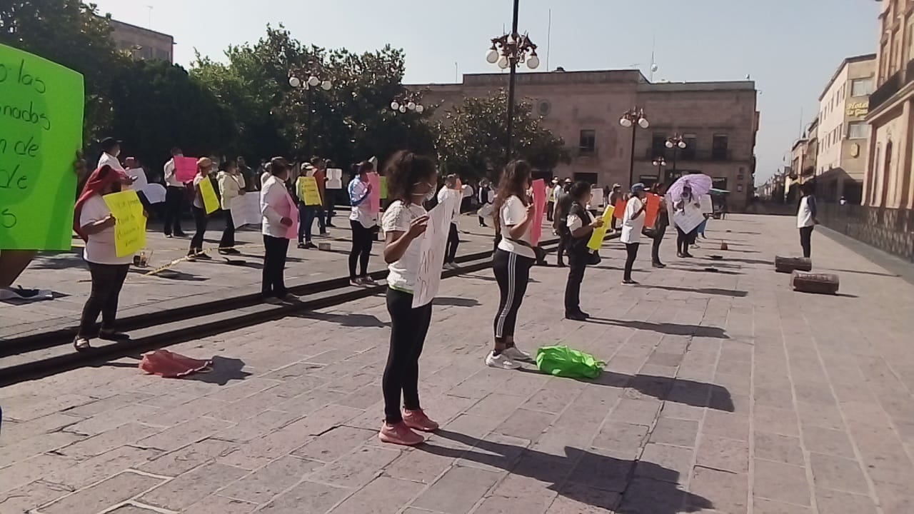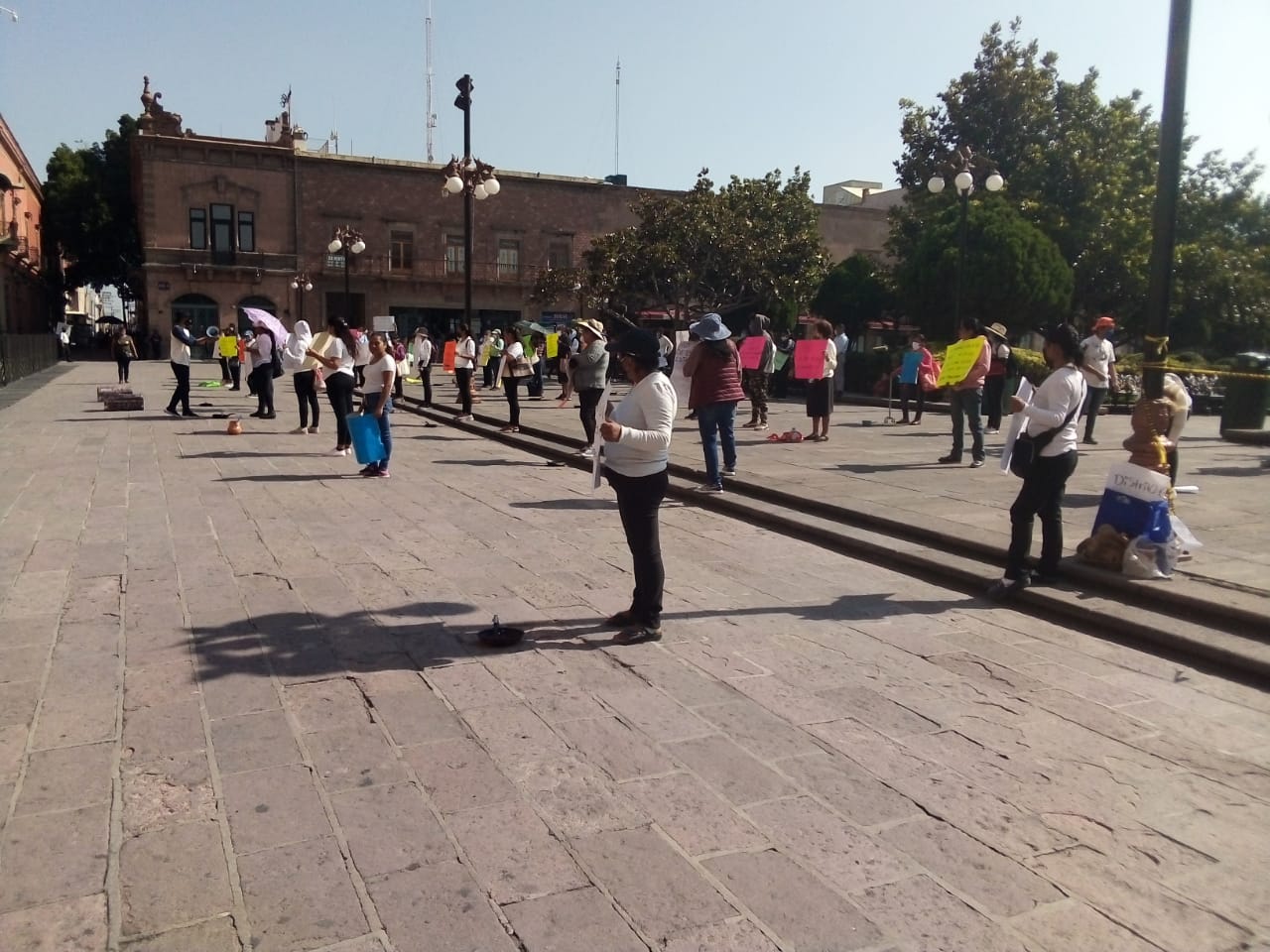 Respetando la sana distancia, antorchistas se manifestaron esta mañan frente al Palacio de Gobierno, ubicado en la Plaza de Armas del centro histórico. Los quejosos colocaron charolas, cacerolas, jarros y demás recipientes de cocina vacíos a modo de protesta, pues señalan que ya no tienen que comer.