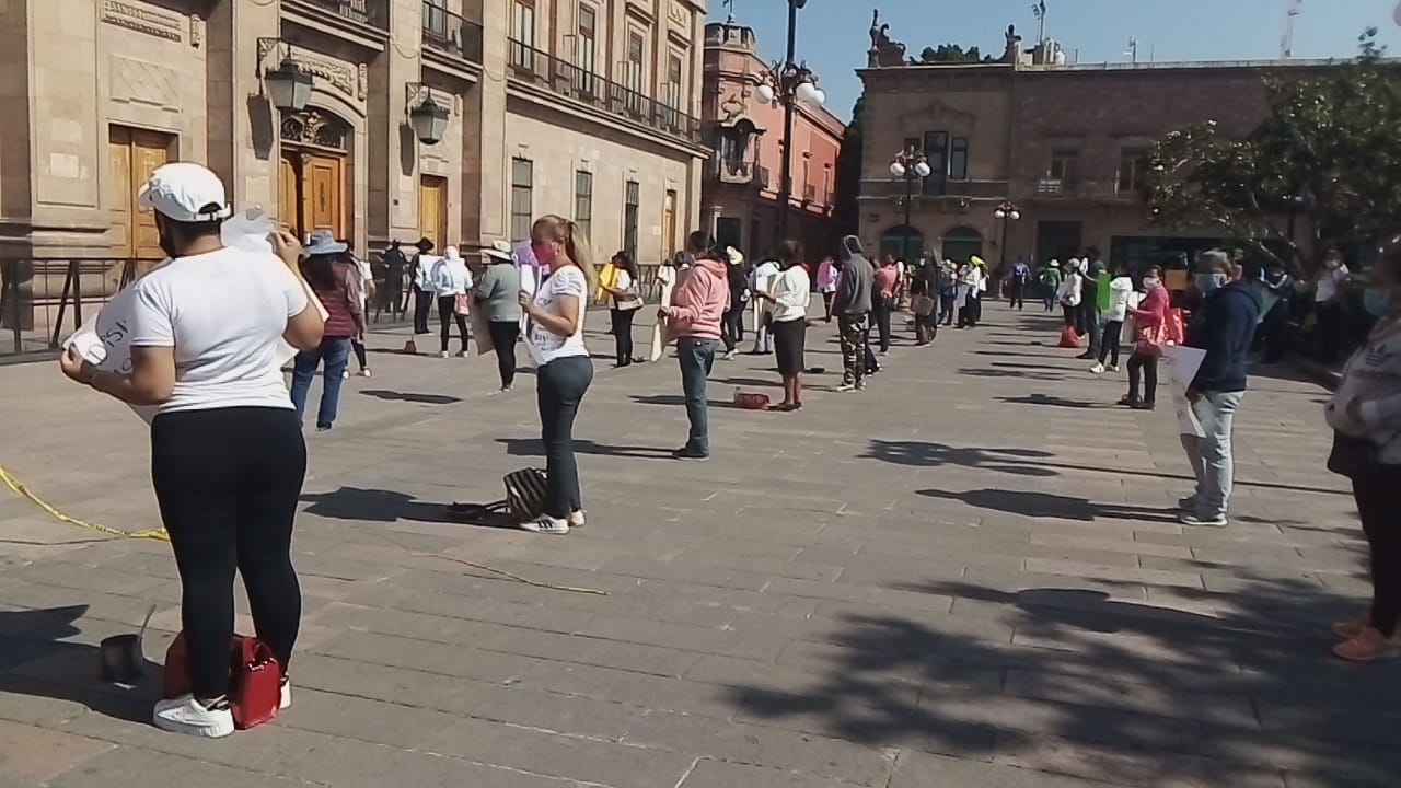 Con más de dos metros de distancia entre cada persona y cada quien con una cartulina con las demandas de apoyo, se pararon frente a la fachada del recinto. Cargaron con gorros y paraguas para protegerse del sol, pues aseguraron que estarán ahí hasta que el mismo gobernador Carreras los atienda y les prometa ayudas.