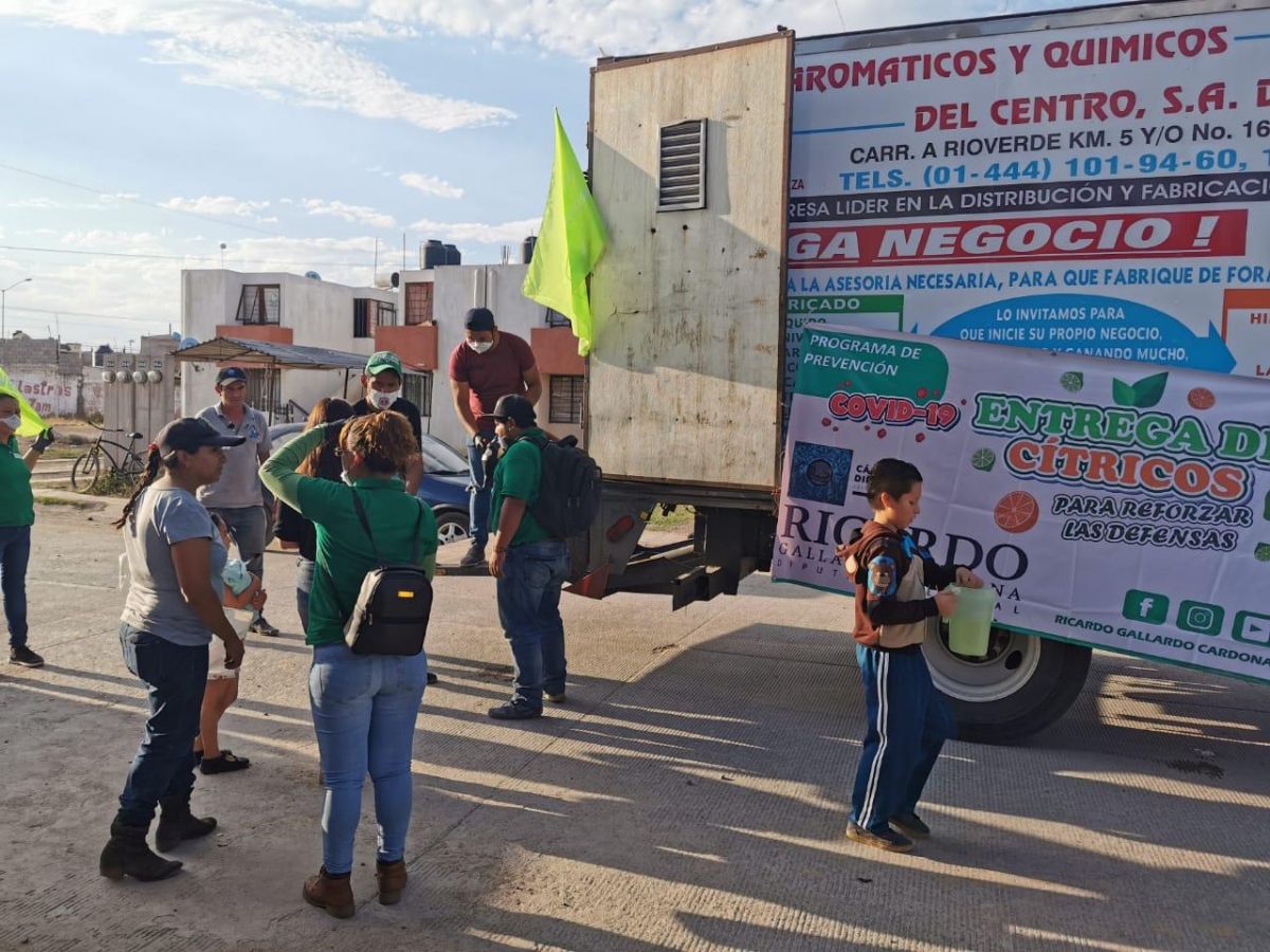 Adicionalmente, el congresista adelantó que el reparto de productos cítricos no se detiene, y mañana mismo habrá repartición casa por casa en la zona Huasteca, para luego dar paso al Altiplano.