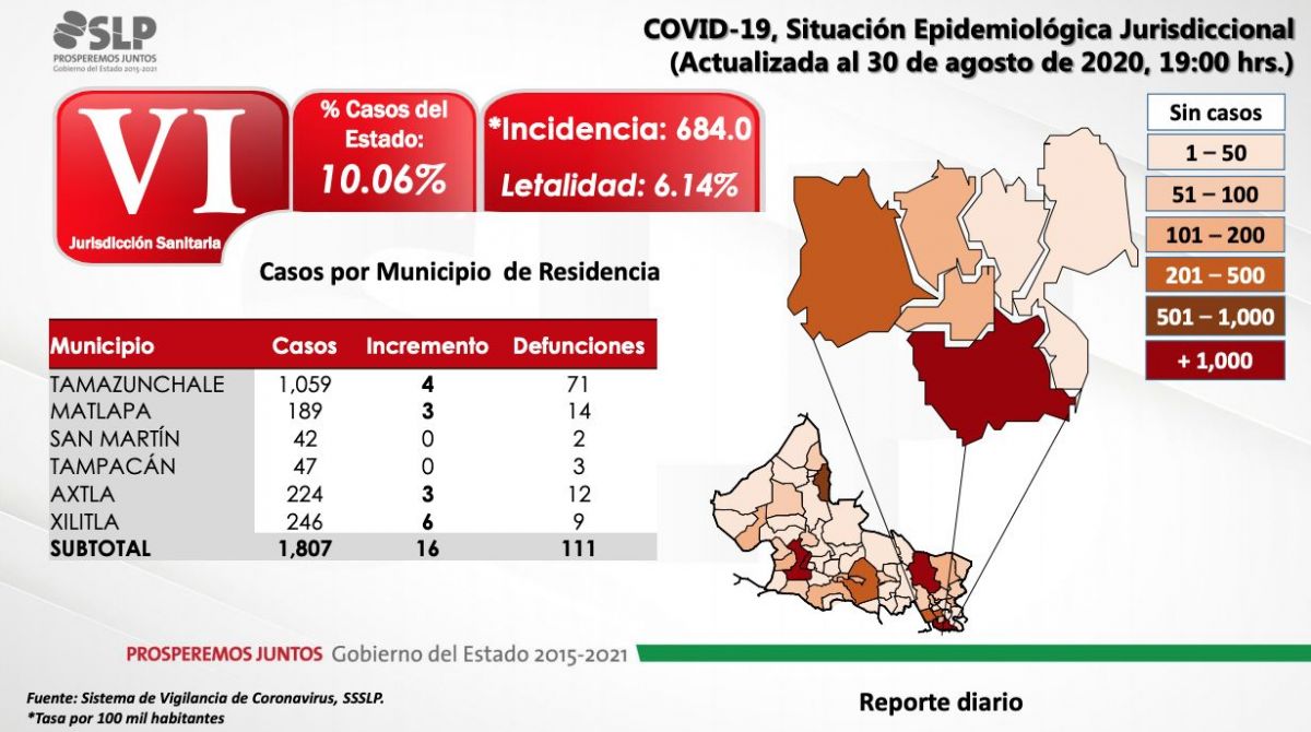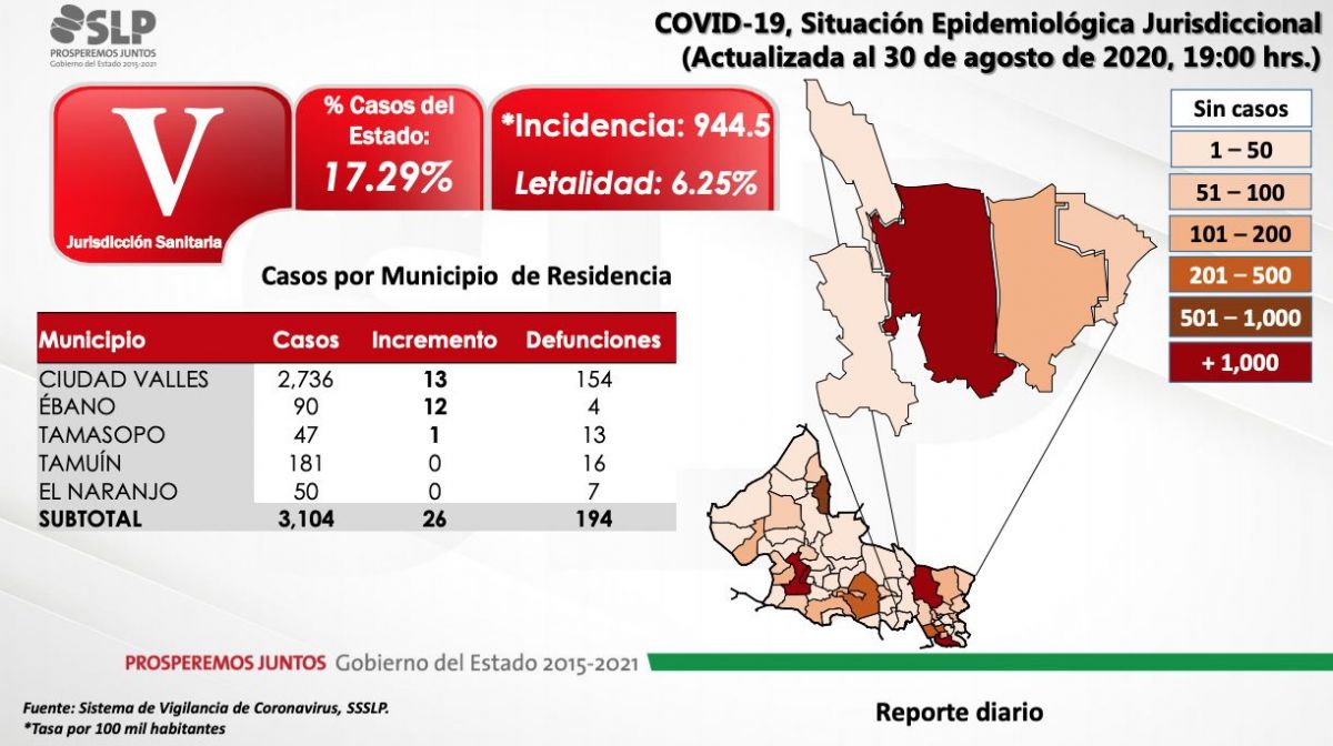 De los nuevos fallecidos 27 presentaron factores como edad, hipertensión, diabetes, obesidad, tabaquismo, enfermedad pulmonar, cardiovascular, renal crónica o inmunosupresión. SLP capital es el municipio con el mayor número de muertes a causa de la enfermedad.