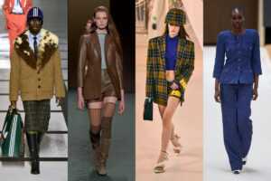 Hermès es conocida por sus recurrentes motivos ecuestres, para Otoño 22 vimos atuendos en cuero café y negro, así como botas a la rodilla y calcetas largas. Para Primavera 22, Chanel alteró su clásico traje de tweed e incorporó hombreras definidas, pantalones y botas. La princesa Charlotte de Mónaco abrió el show montando su caballo español Kuskus. En la misma colaboración Adidas X Gucci, Alessandro Michele diseño cascos ecuestres de pana, botas de montar, shorts a cuadros en tonos tierra y suéteres tejidos de acuerdo con la cultura del deporte. Off-White igualmente presentó cascos, para ambas, Primavera y Otoño 22. En colores lisos, tartan y con glitter, a juego con trajes de falda o pantalón y chaquetas perfectamente construidas.