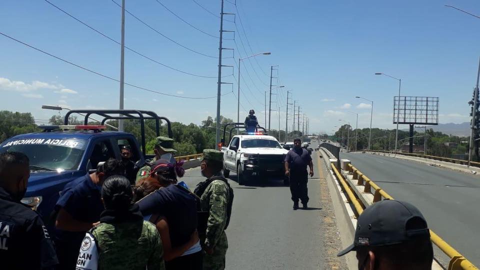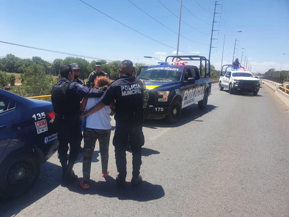 La Dirección General de Seguridad Pública de Soledad informa que en una oportuna intervención se disuadió a una mujer de lanzarse desde lo alto del puente vehicular de Periférico Oriente y Rivera.
