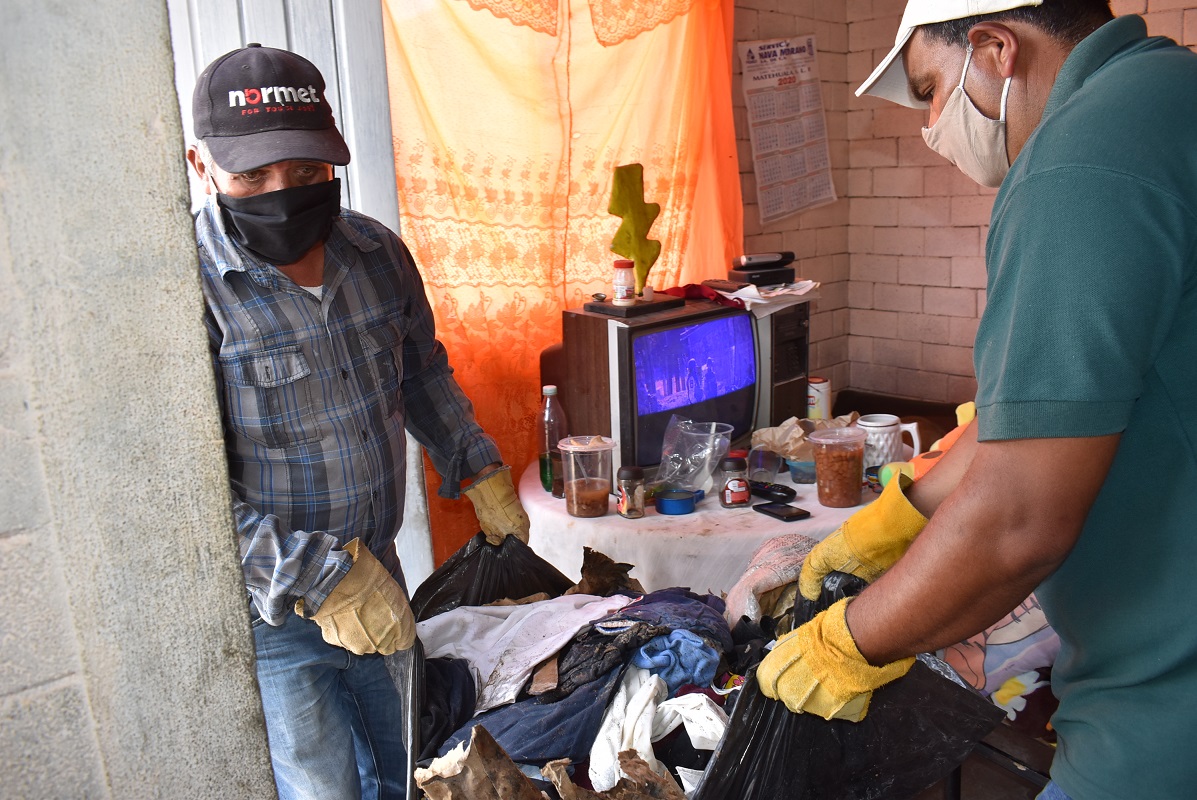 Personal del DIF y de Servicios Públicos Primarios realizaron una limpieza extenuante en la vivienda para adecuarla a las óptimas condiciones del pequeño, se levanto una gran cantidad de bolsas de basura acumulada, y se le acondicionó la entrada en la cual se apreciaban desechos de construcción lo que resultaba un peligro para el menor.