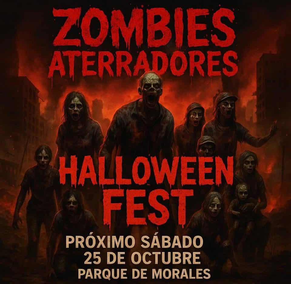 Este sábado 25 de octubre los zombies más aterradores invadirán el Halloween Fest, un evento familiar que se llevará a cabo en el Parque de Morales a las 18:00 horas, podrás ir disfrazado y decorar tu vehículo, vive una noche de miedo y diversión.
