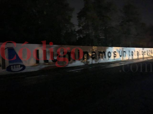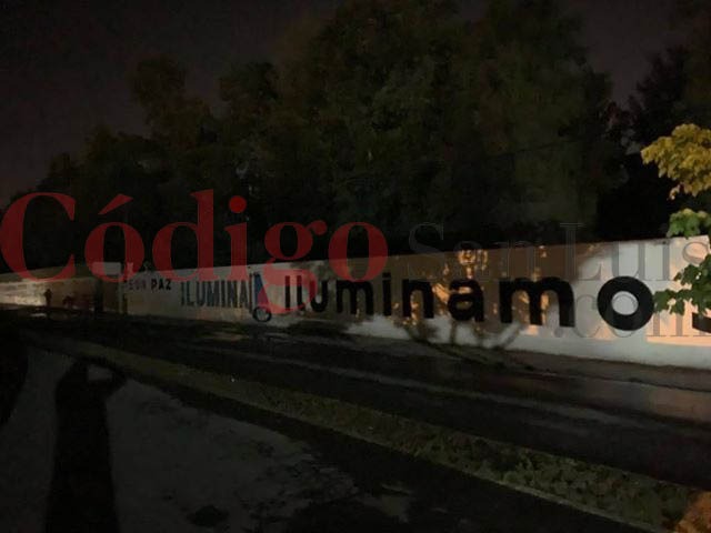 Las luces colocadas no alumbran ni el letrero que mando pintar el ayuntamiento en uno de los muros del panteón para promocionar su programa para alumbrar San Luis. A duras penas se distingue su logo de “En Son de Paz”.