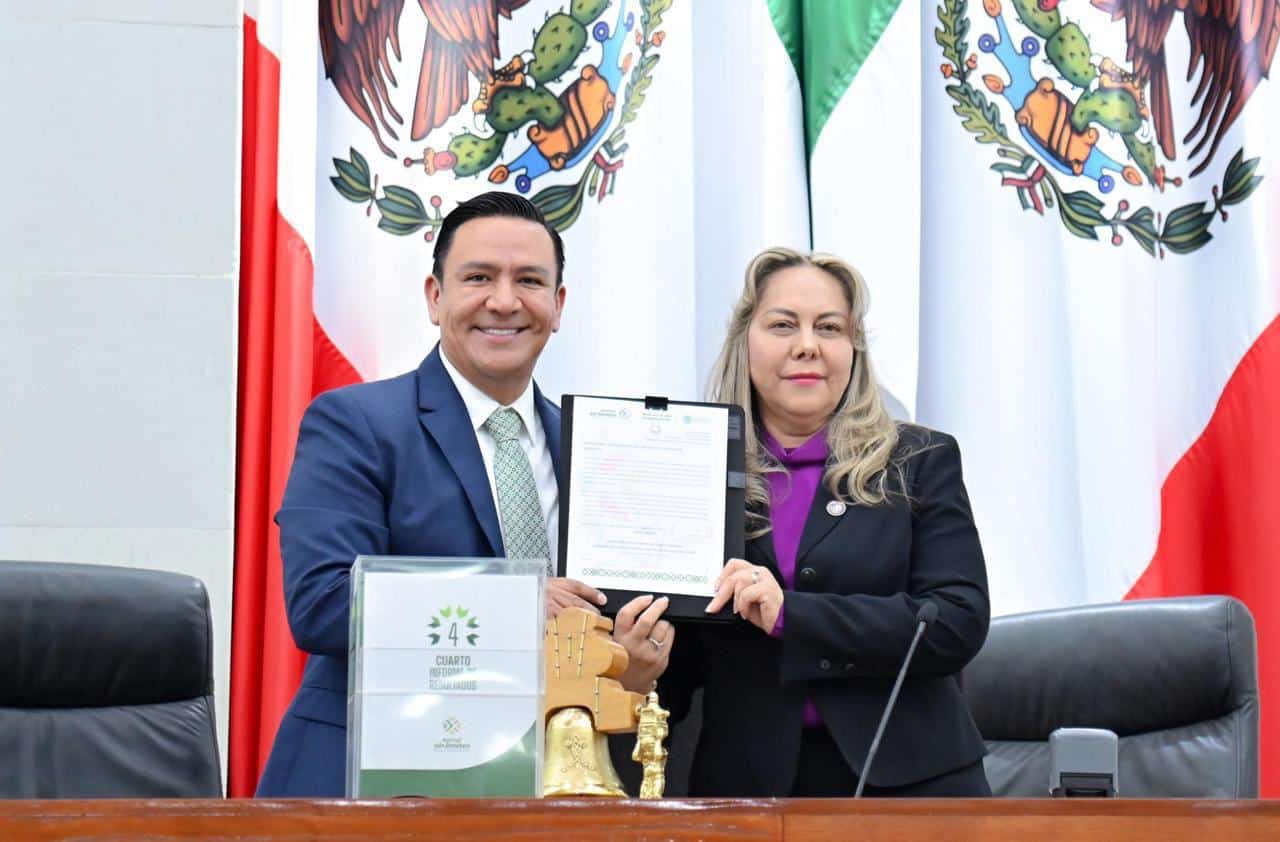 Durante la ceremonia, el funcionario entregó el Informe a la presidenta de la Directiva del Congreso, Sara Rocha Medina, y transmitió un mensaje del Gobernador en el que destacó la unidad y transformación que vive San Luis Potosí: “ahora es un Estado más grande, más fuerte, más justo y más inclusivo”, afirmó.
