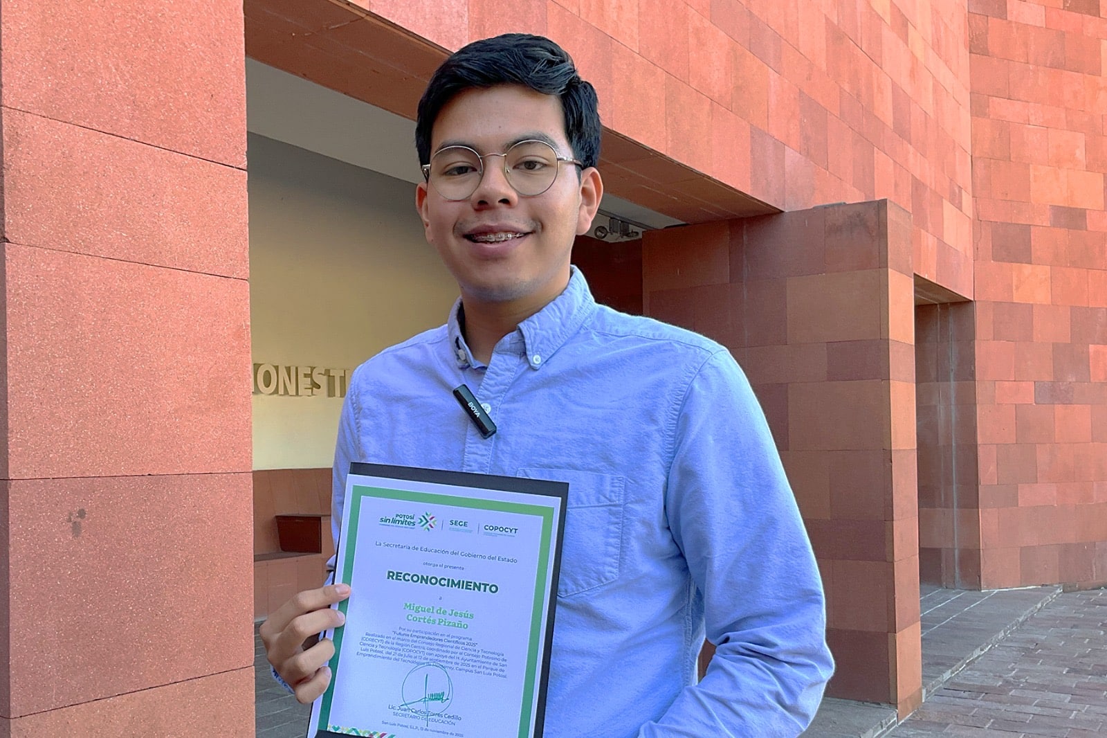 Respecto a su reconocimiento en la Feria Mexicana de Ciencias e Ingeniería, mencionó que participó en el curso de emprendimiento del Ayuntamiento de San Luis Potosí, lo que le permitió obtener su pase al evento nacional en Tampico, Tamaulipas, a realizarse en la primera semana de diciembre de 2025.