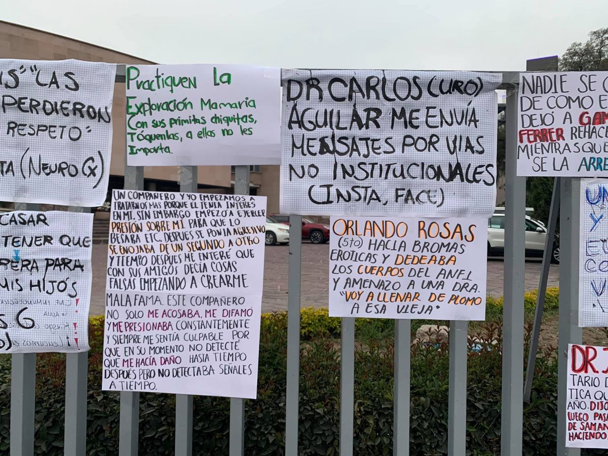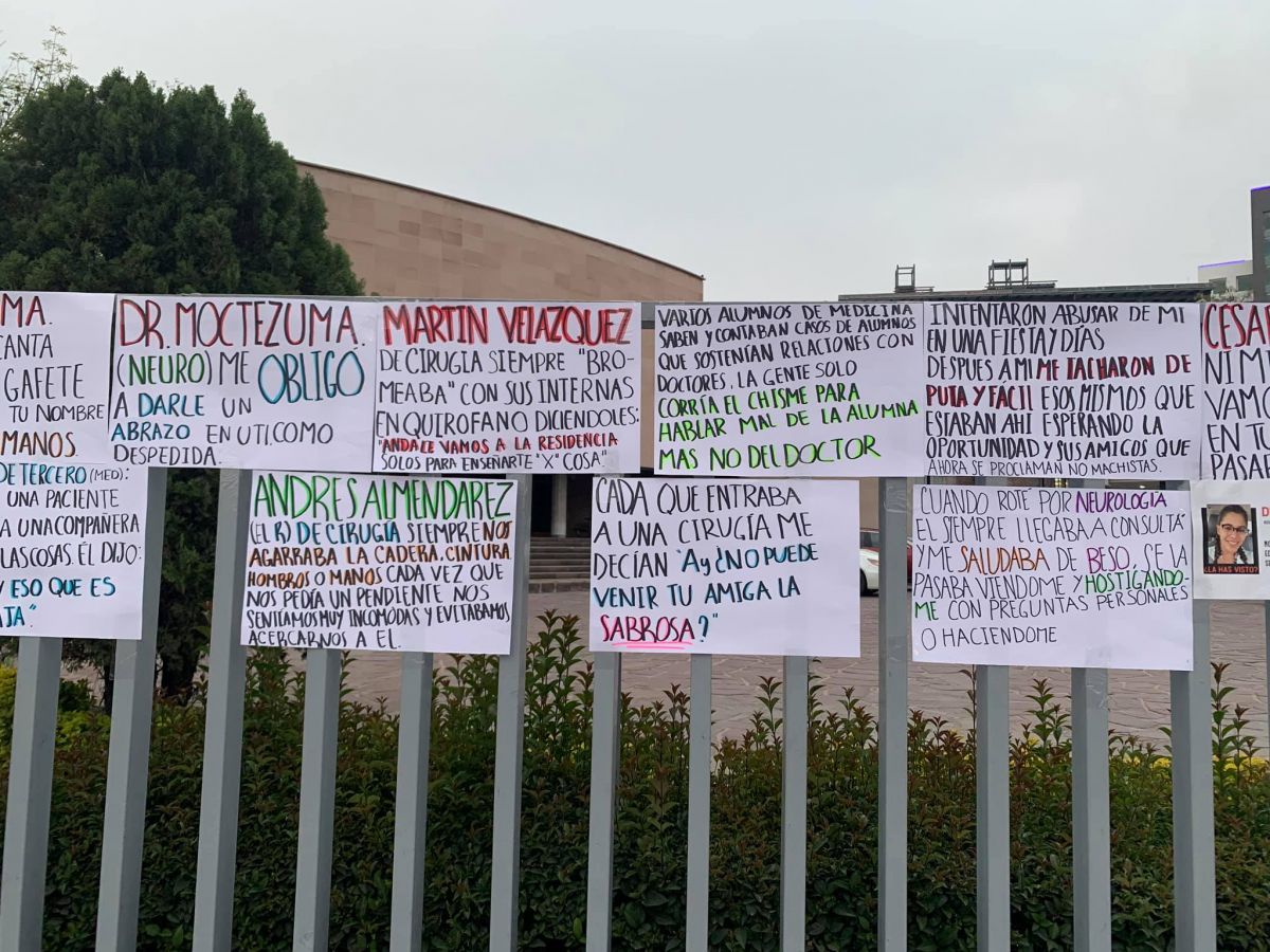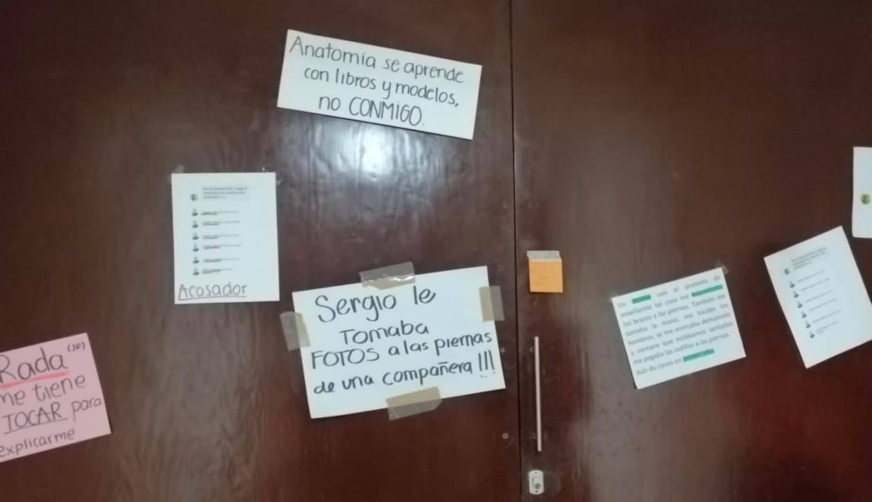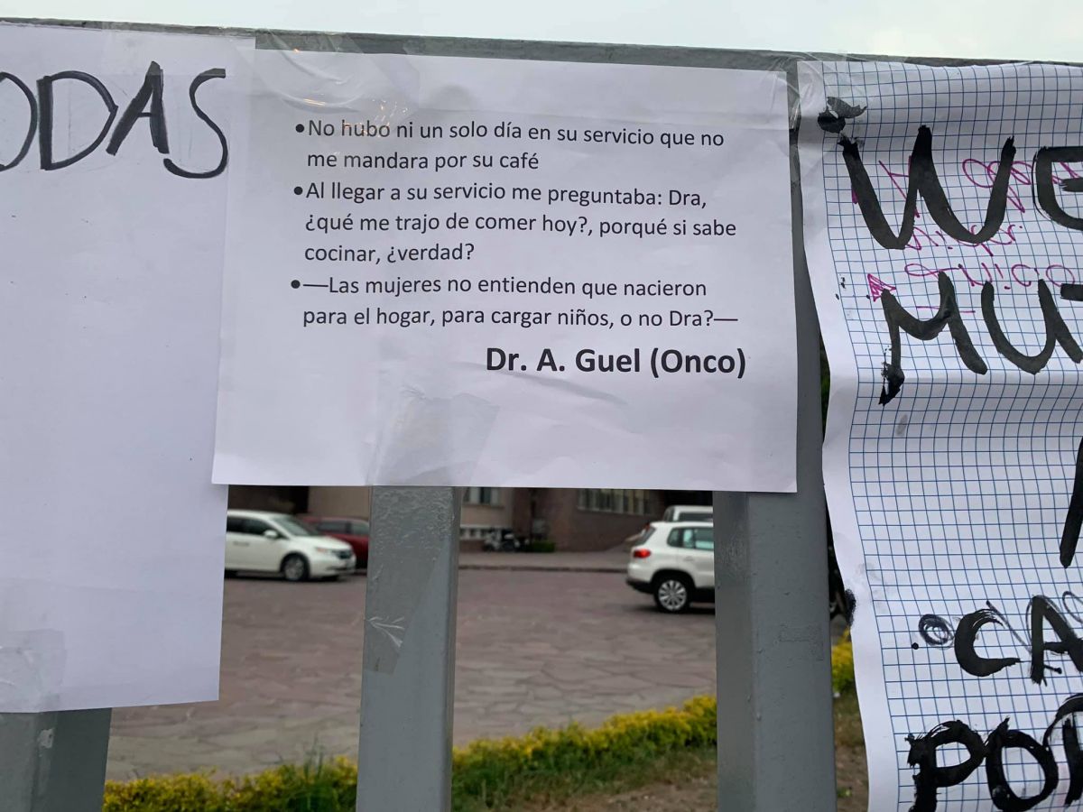 Esta mañana de lunes 9 de marzo, la Facultad de Medicina de la Universidad Autónoma de San Luis Potosí (UASLP) amaneció completamente tapizada de letreros, cartulinas y mantas con denuncias contra profesores, adscritos, residentes y otros estudiantes por acoso sexual y abusos. Con nombres y apellidos, enlistaban a los médicos y relataban sus casos.