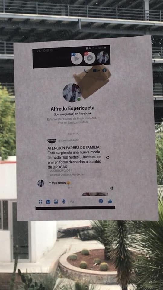 Todo esto fue compartido también a través de una cuenta de Facebook que fue abierta apenas el día de ayer. Esta se llama Denuncia Facultad de Medicina UASLP y apenas cuenta con 117 seguidores; no obstante las imágenes ya comenzaron a viralizarse por la red social.