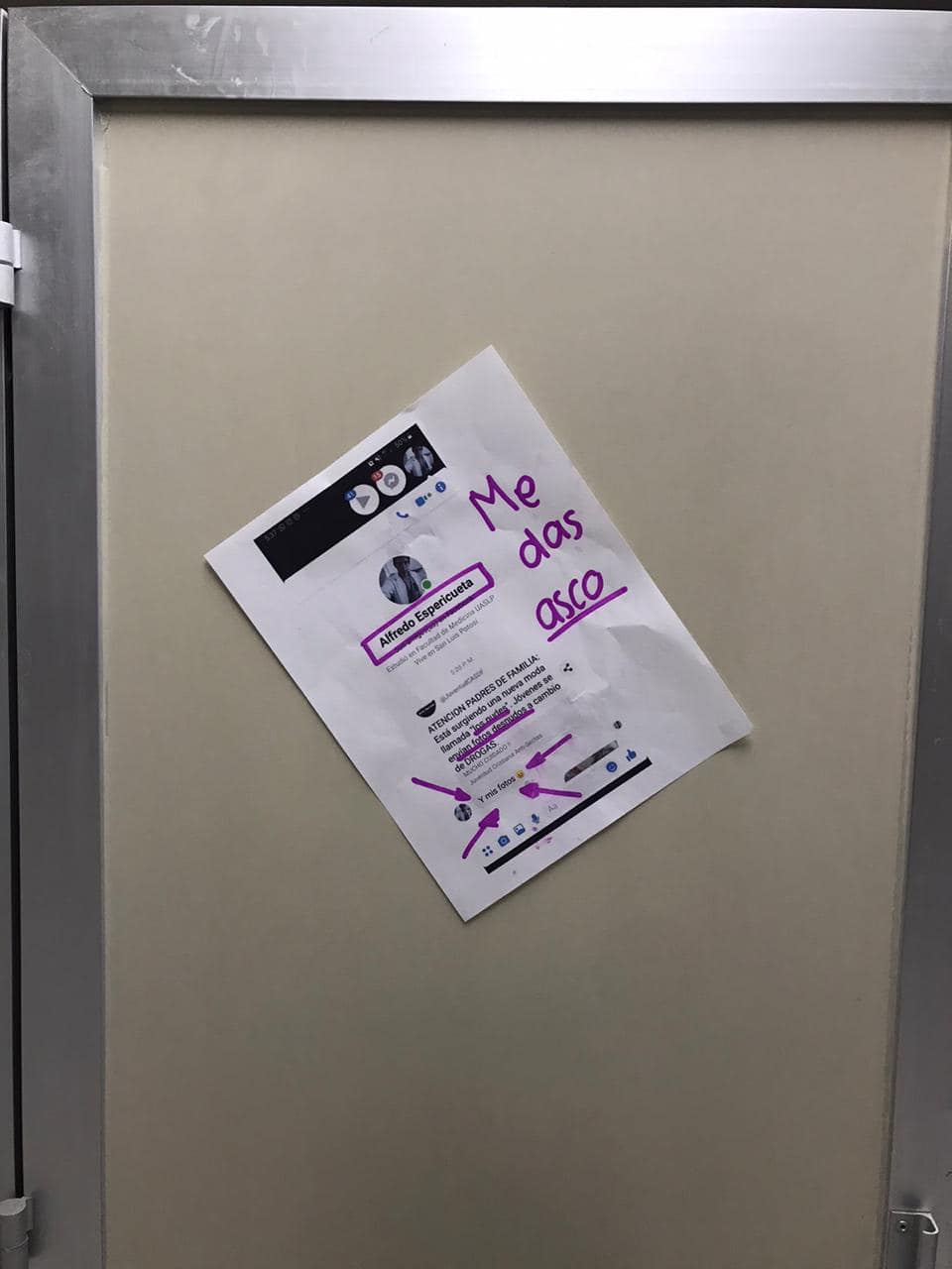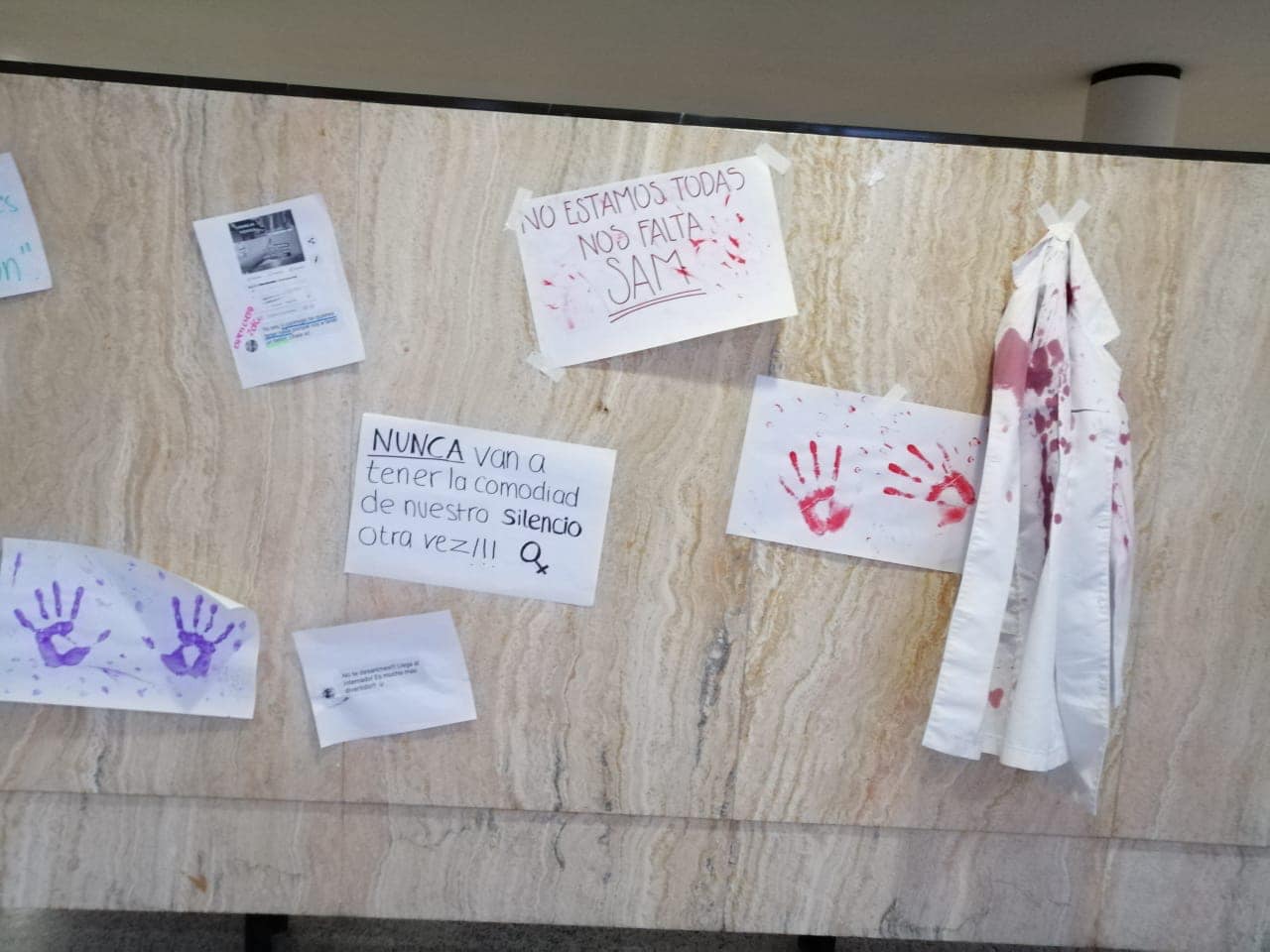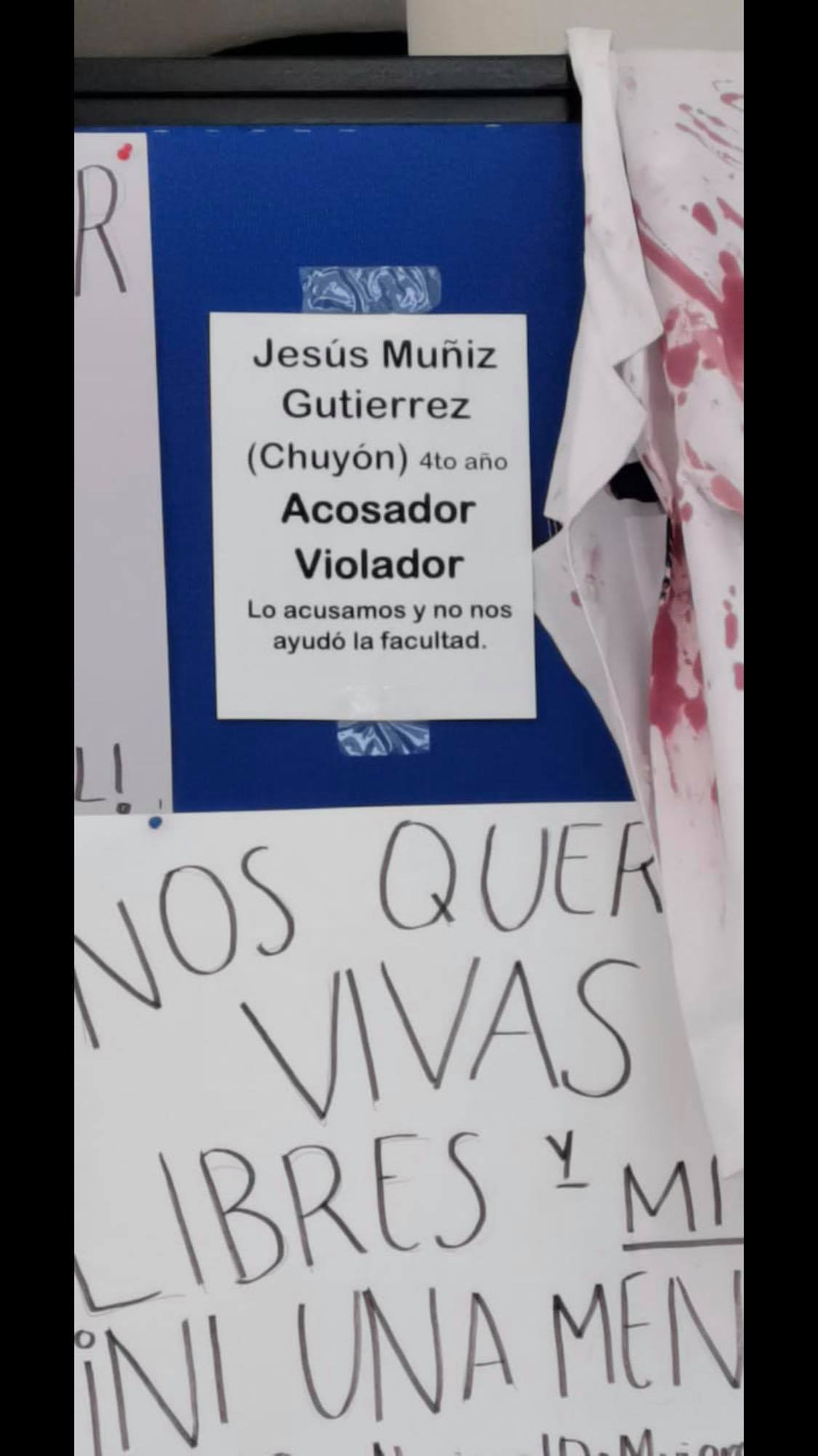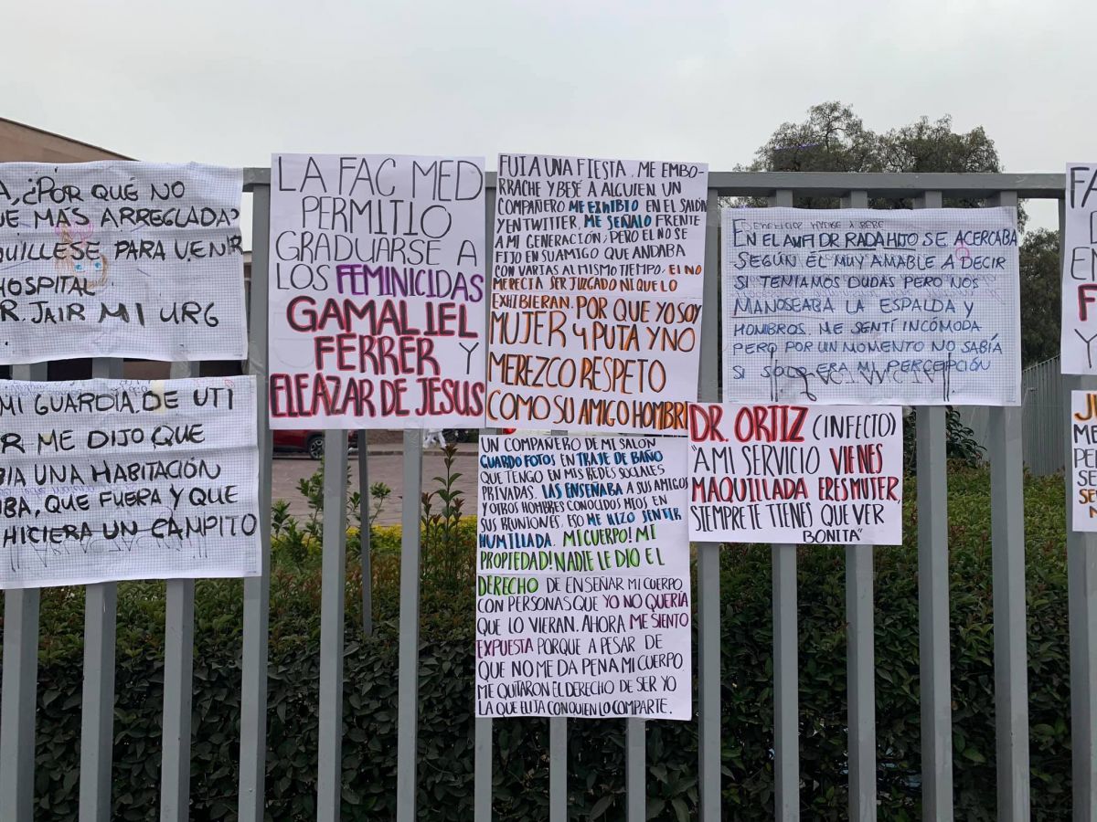 Además, se expusieron capturas de pantalla de conversaciones con otros estudiantes de la Facultad, donde les pedían fotografías desnudas o acosaban a las jóvenes de Medicina. Junto a estos letreros se encontraban otros de alumnas desaparecidas.
