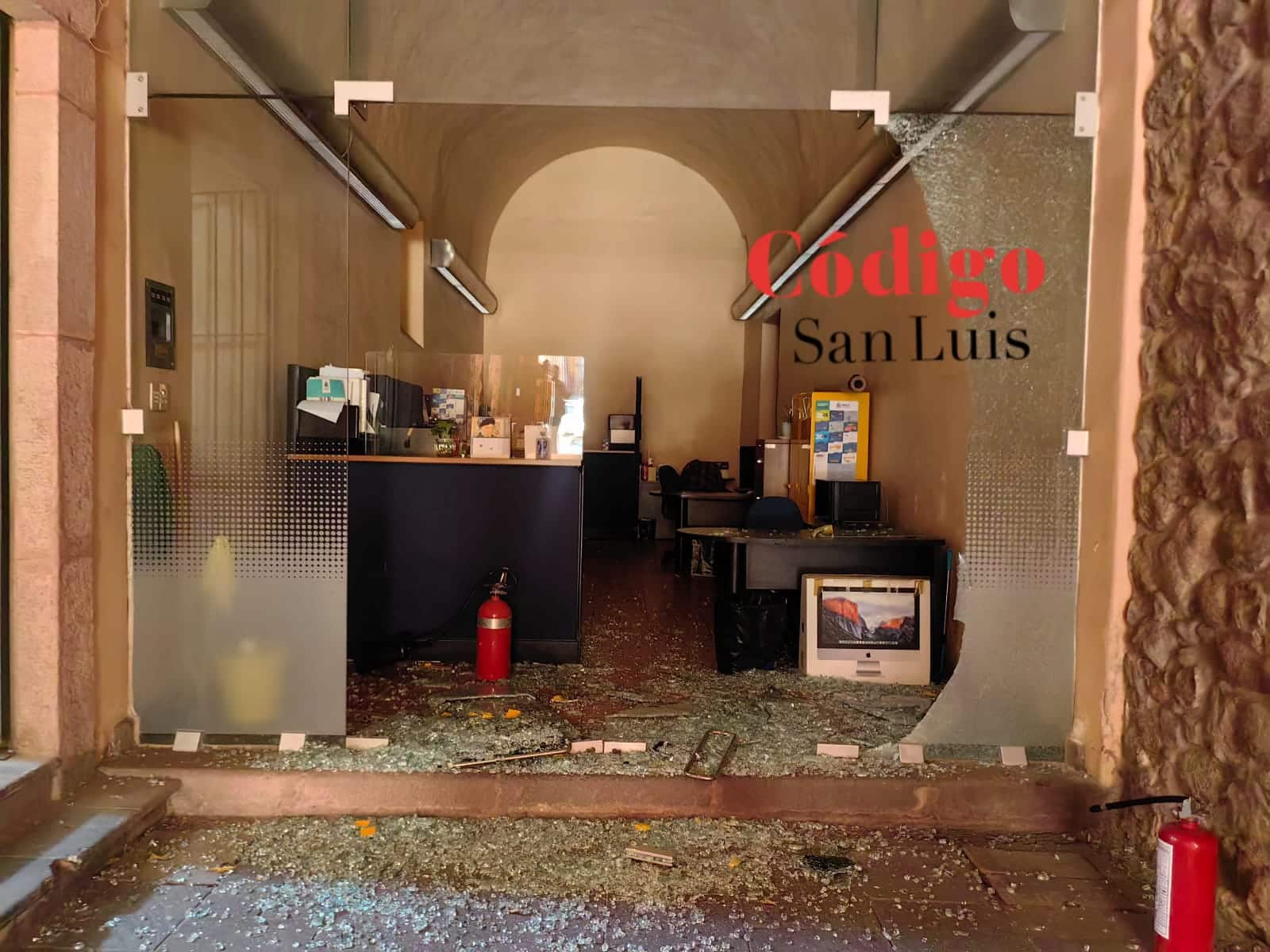 Al ingresar nuevamente al recinto, las cámaras de Código San Luis atestiguaron las paredes grafiteadas, los cristales rotos y las huellas de la violencia, aunque momentánea, a gran escala en el edificio central de la UASLP.