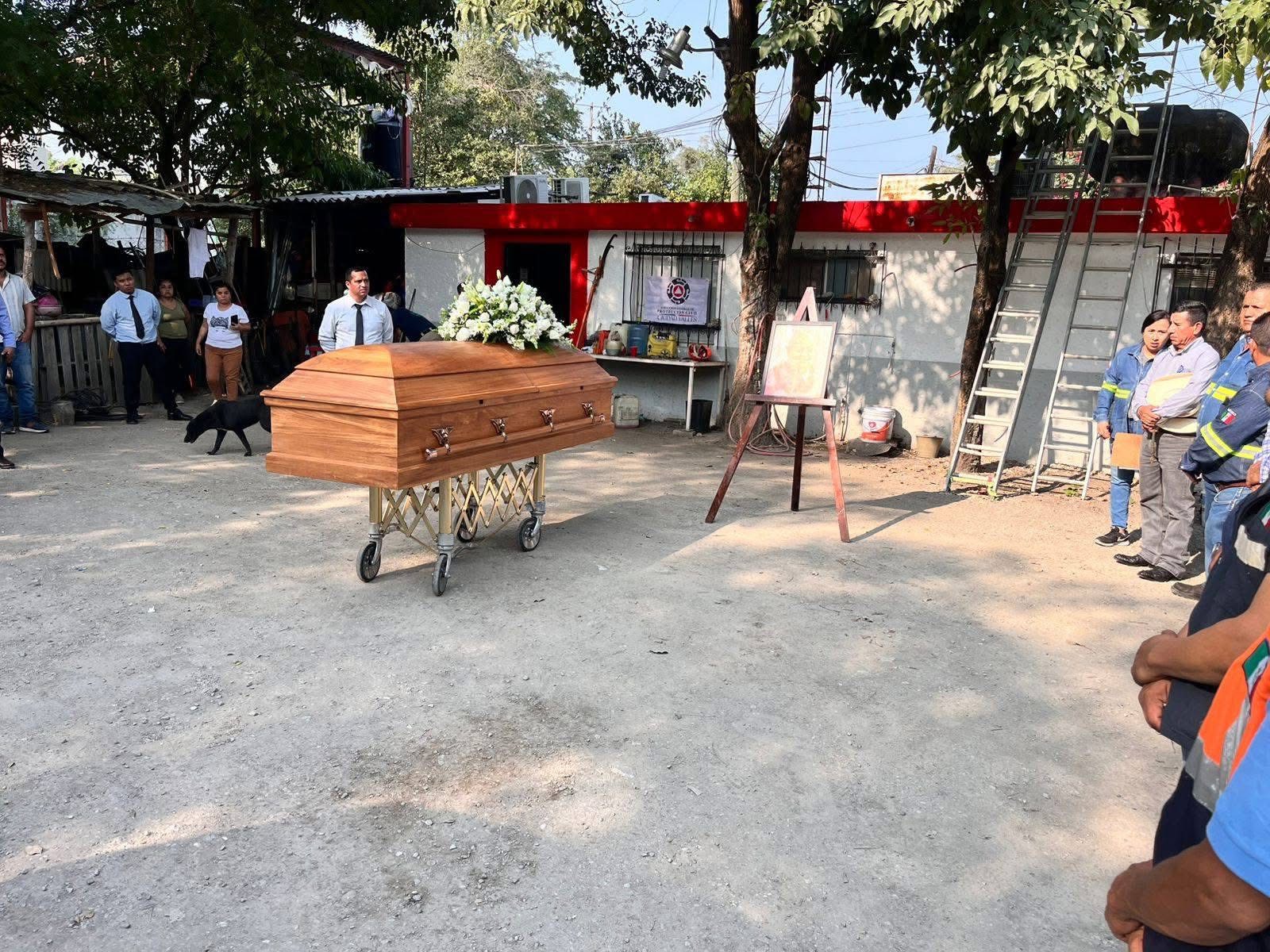 En reconocimiento a su trayectoria y años de servicio, personal administrativo y operativo de la Dirección de Protección Civil Municipal le rindió un homenaje de cuerpo presente, encabezado por el actual titular de la corporación, Miguel Ángel Sánchez Hernández, quien con la voz quebrada pronuncio el nombre de su exjefe y amigo para el último pase de lista.