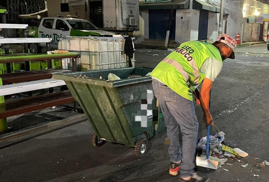 Durante la última jornada de limpieza nocturna, se logró recoger 14 toneladas de desechos utilizando dos camiones recolectores, sumando esta cantidad a la recogida realizada en el transcurso del día, mientras tanto se mantiene la organización de equipos de trabajo destinados a la limpieza de las calles del centro, continuando con el esfuerzo para mantener la zona limpia y ordenada.