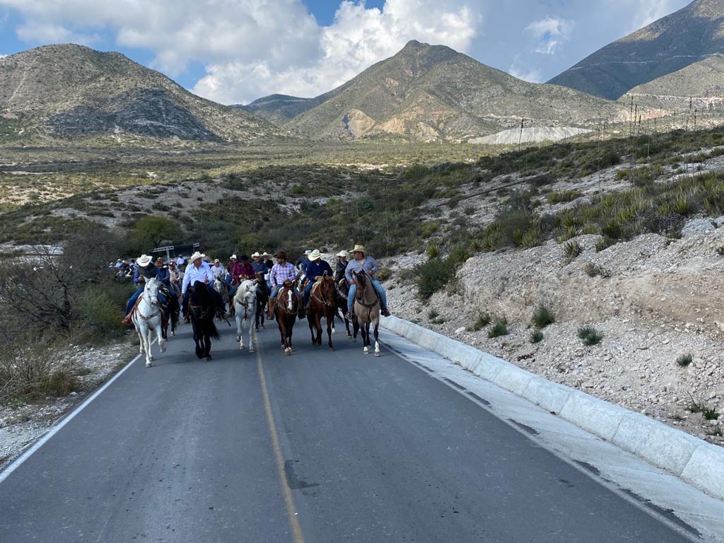 Habitantes del pueblo minero salieron a las calles para observar el paso de los caballos mientras saludaban a las autoridades y al diputado federal Ricardo Gallardo Cardona.