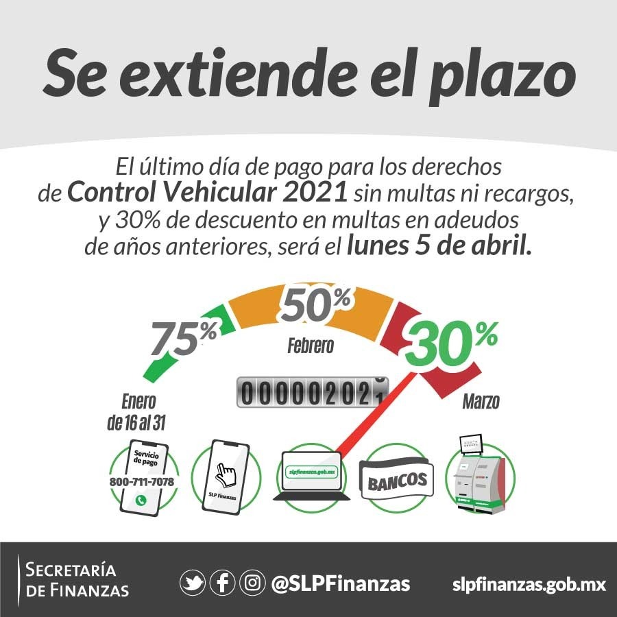 La Secretaría de Finanzas de Gobierno del Estado, informó que se amplía el plazo hasta el lunes 5 de abril para pagar el control vehicular 2021 sin multas. De igual manera ese día vence el plazo para aplicar el 30 por ciento de descuento en multas de control vehicular de años anteriores.