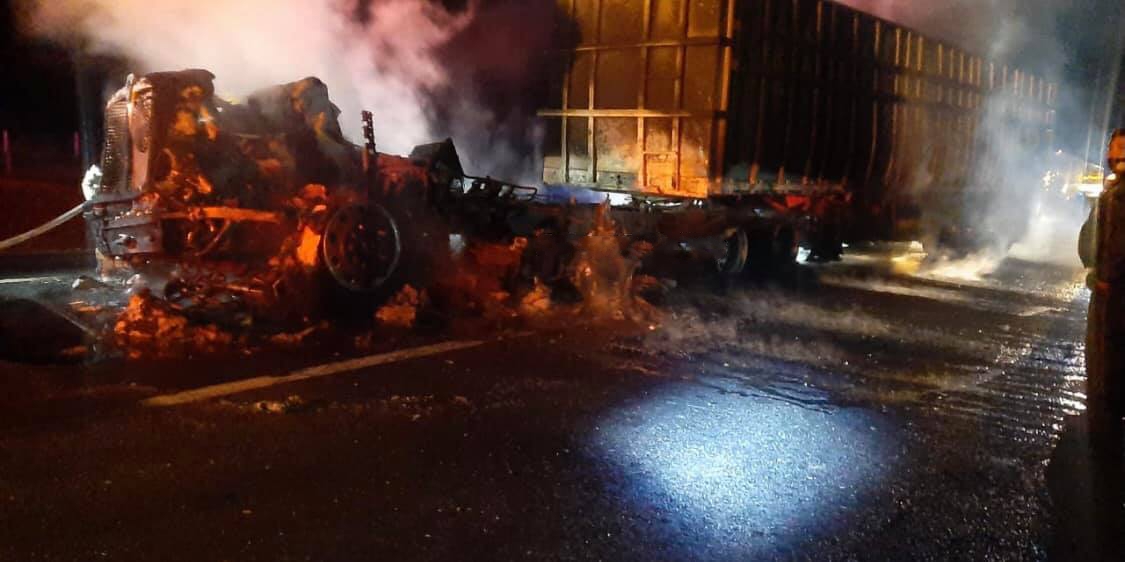 Cuando detuvo la marcha, trató de desacoplar el tractor del remolque, pero las llamas impidieron pudiere lograrlo del todo. Pronto el fuego se generalizó en el tractor y se pasó a la góndola, pronto la unidad por completo fue envuelta por las llamas. Fueron automovilistas y camioneros quienes, al darse cuenta de la situación, llamaron al 0911 de atención a emergencias.