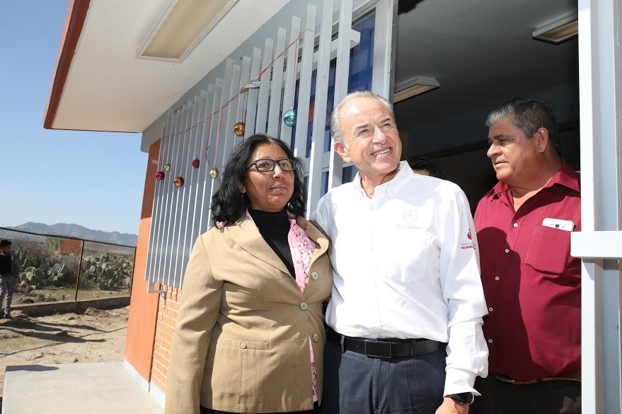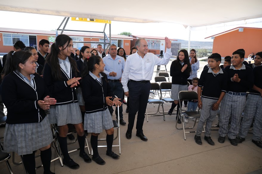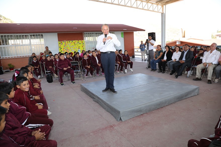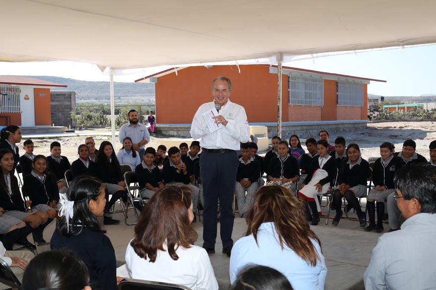 Posteriormente, en la telesecundaria “Mariano Matamoros” en la comunidad de Mesa de los Conejos, el Gobernador del estado, Juan Manuel Carreras López, realizó la entrega de dos aulas educativas y un módulo de sanitarios, obras que representan una inversión de 1 millón 124 mil pesos y que forman parte del programa Escuelas al CIEN.