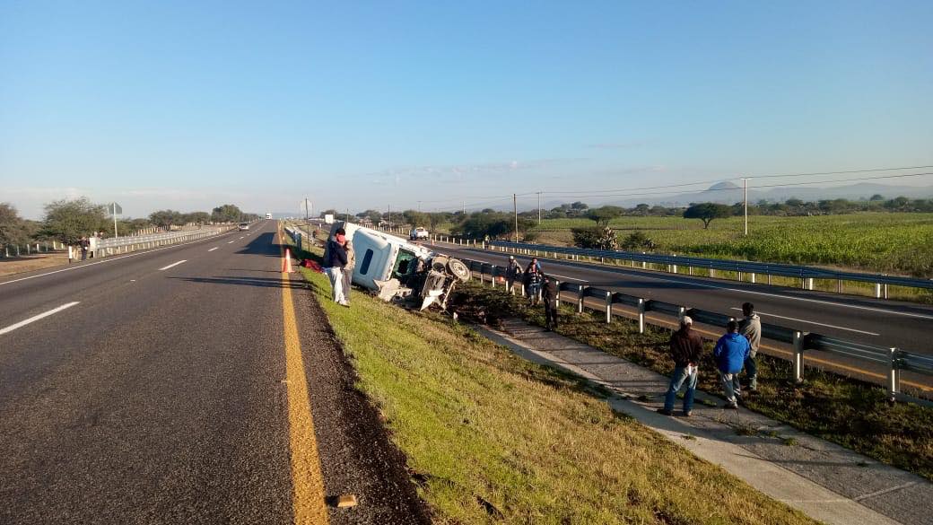 Resultó con golpes contusos el operador de un tráiler luego de volcar el vehículo a su cargo en la carretera 57, México-Piedras Negras, tramo Querétaro-San Luis, en los límites con el estado de Guanajuato. Los daños materiales son elevados y el tránsito se hizo lento porque algunos conductores detenían la marcha para ver qué había pasado. Acudieron paramédicos al lugar para auxiliar a la víctima.